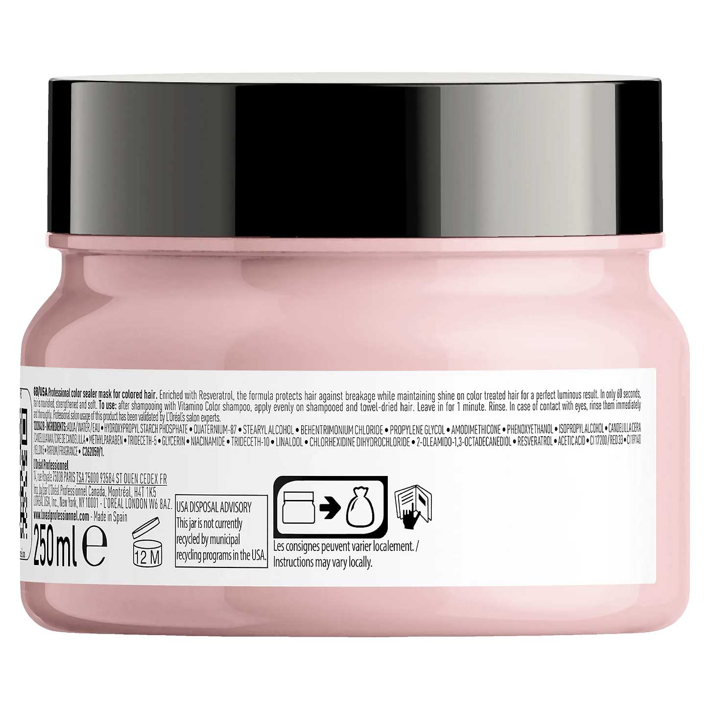 ماسک حرفه ای مراقبت از موهای رنگ شده لورال سری اکسپرت Loreal Serie Expert Vitamino Color دارای فرمول پیشرفته سالنی با الهام از فناوری درمانی و مراقبت از پوست لورال و مواد موثر باکیفیت برای محافظت کنندگی، درخشان کنندگی، لطافت بخشی و حفظ کیفیت و شفافیت موهای رنگ شده می باشد. ماسک موی اکسپرت لورال حاوی ویتامین ها از جمله پرو ویتامین B5 جهت نفوذ عمیق به ساقه مو و ترمیم و بازسازی آن است، این ترکیب همچنین حاوی ماده موثر Resveratrol به عنوان پلی فنول (آنتی اکسیدان) قدرتمند محافظت کننده فیبر مو در برابر کدر شدن است و به کمک فناوری لاین حرفه ای لورال، موهایی با درخشندگی 5 برابر بیشتر و به زیبایی موهای سالنی خواهیم داشت.
