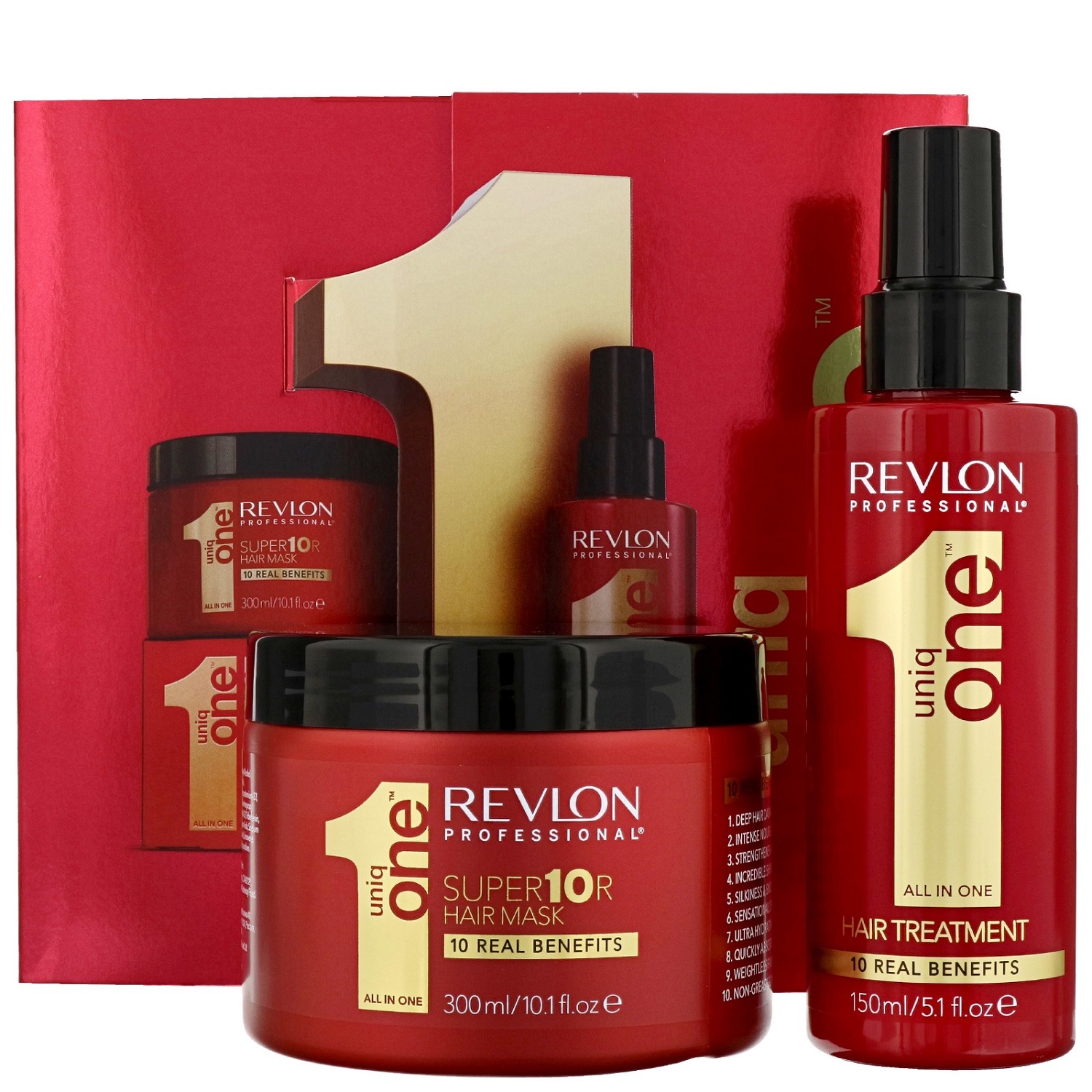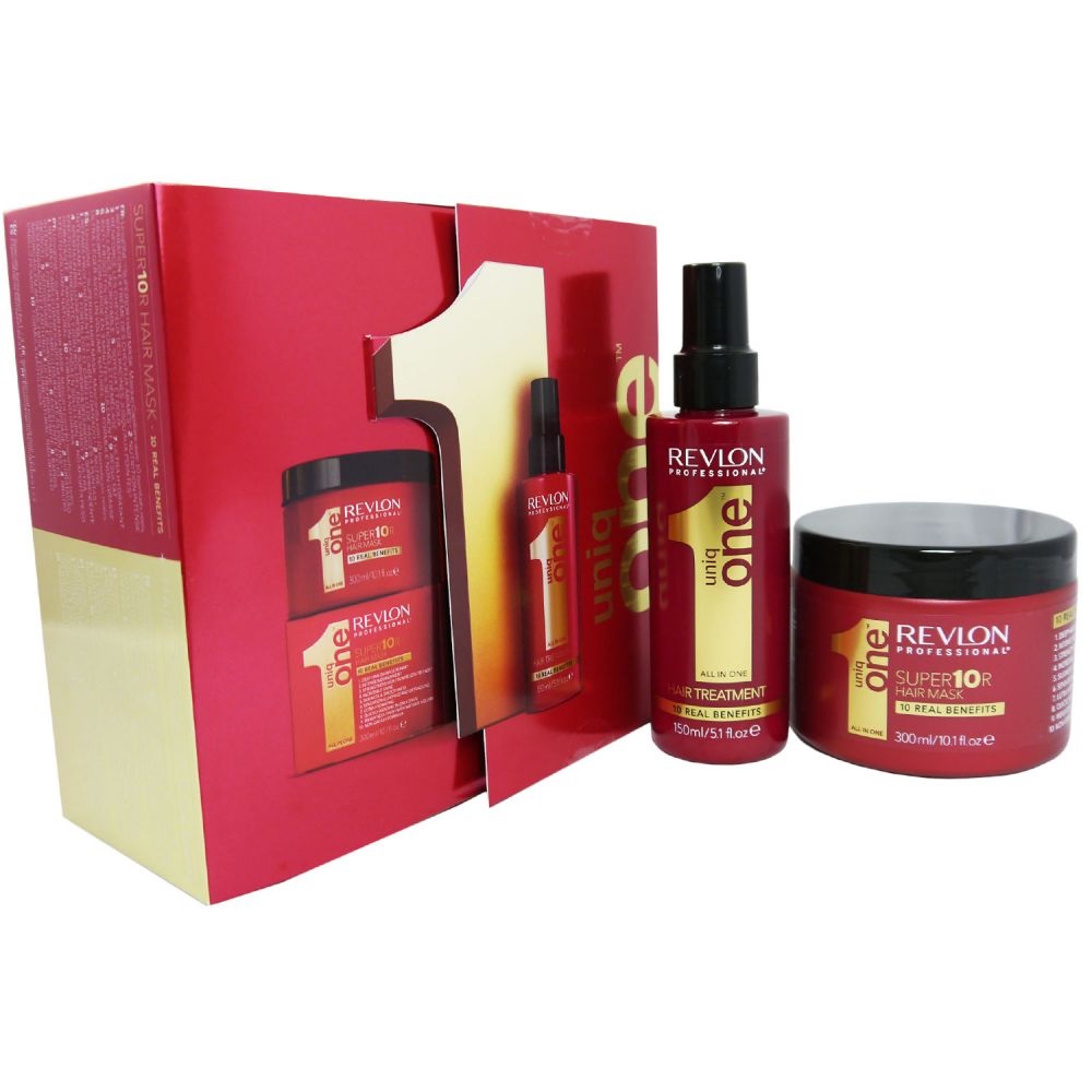 ست اسپری و ماسک موی 10 کاره رولون یونیک وان Revlon Uniq One مجموعه ای فوق العاده و باکیفیت جهت مراقبت از مو و احیای سلامتی موها می باشد. ست رولون یونیک وان شامل ماسک موی همراه با آبکشی و اسپری پس از استحمام یونیک وان است که دارای طیف گسترده ای از قابلیت ها برای انواع مو می باشد. 10 عملکرد مجموعه یونیک وان رولون شامل موارد زیر است: