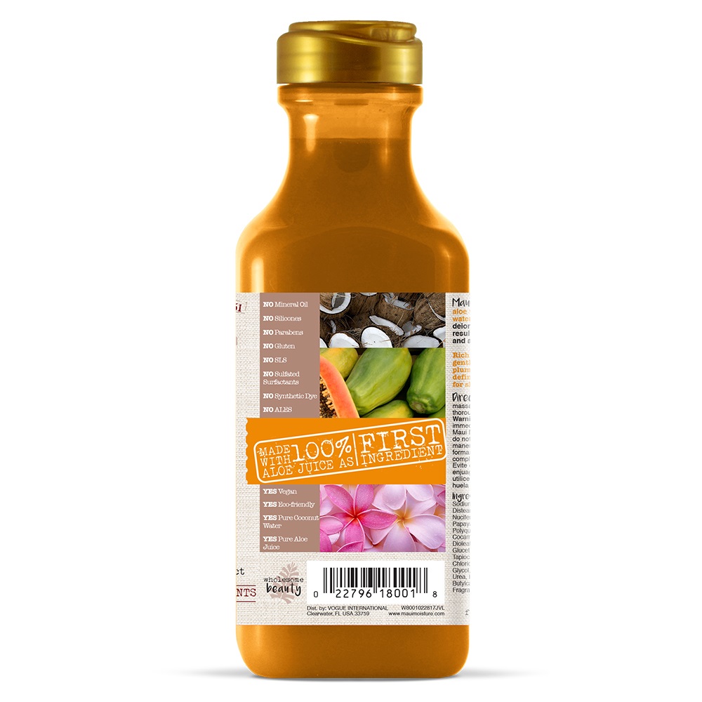 شامپو آبرسان و ضدوز موهای ضخیم و فر روغن نارگیل مائوئی مویسچر Maui Coconut Oil محصولی ارگانیک و فوق العاده جهت موهای ضخیم و فر است، موهایی که نیازمند مراقبت ویژه هستند و دچار آشفتگی و وز شده اند. شامپو روغن نارگیل مائوئی ضمن آبرسانی کامل، آشفتگی موهای درهم را رفع کرده و همچنین وز مو را از بین می برد و با تعریف موهای فر زیبا و خوش حالت سلامتی و درخشندگی موها را بازمی گرداند. شامپو روغن نارگیل مائوئی مویسچر حاوی روغن نارگیل، آب آلوئه ورا به همراه کره پاپایا و عصاره گل پلومریا است که محصولی فوق العاده، ملایم و بدون سولفات و مواد مضره را به ارمغان آورده است.