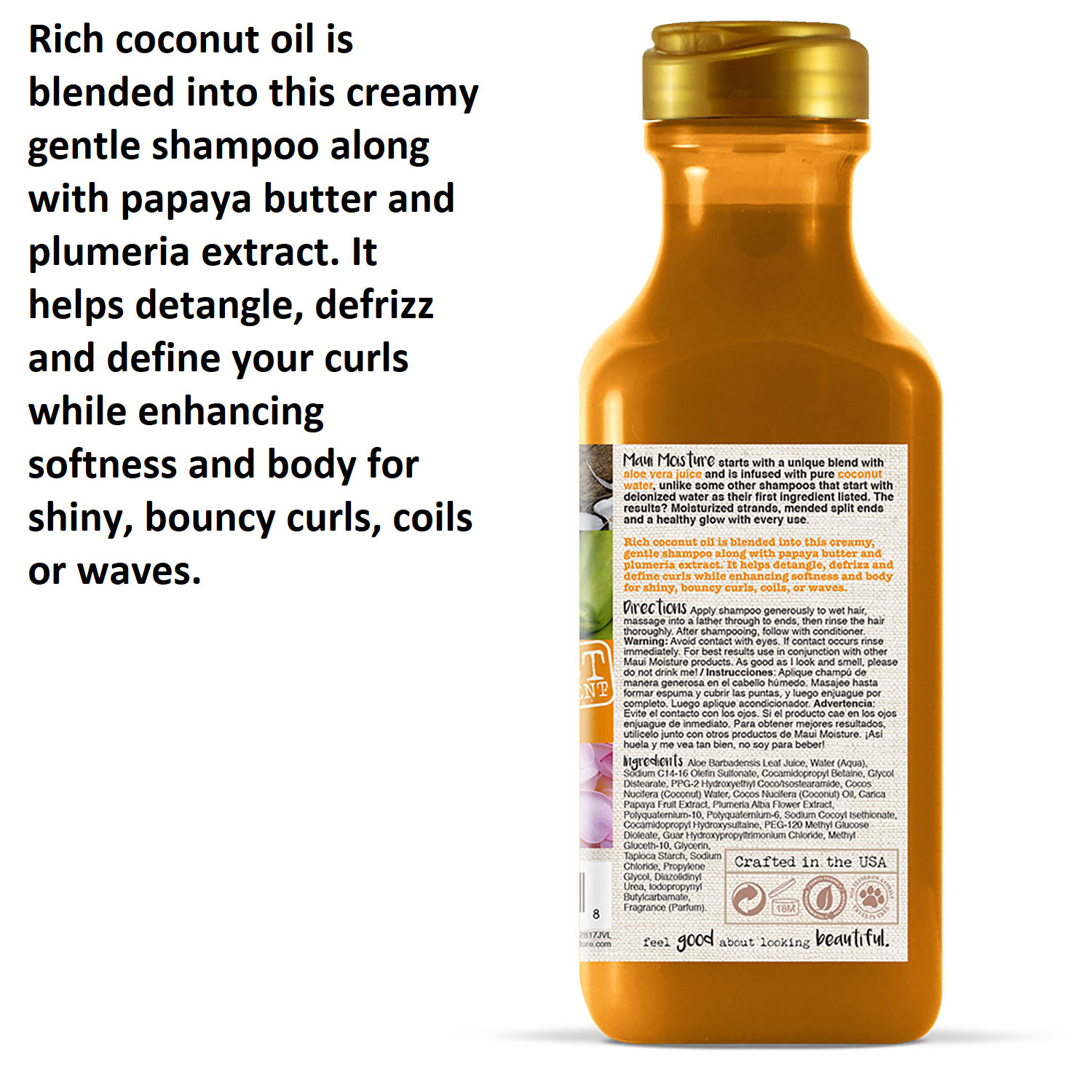 شامپو آبرسان و ضدوز موهای ضخیم و فر روغن نارگیل مائوئی مویسچر Maui Coconut Oil حجم 385 میلی لیتر