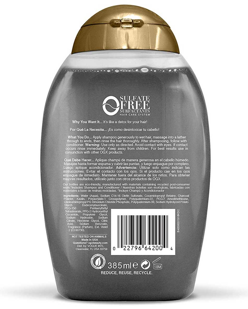 شامپو پاک کننده شارکل او جی ایکس Ogx Charcoal Detox محصول ارگانیک و حاوی ذغال پوست نارگیل فعال شده در دمای بالا به همراه خاک رس کائولین بوده و درخشان کننده و پاک کننده عمیق مو محسوب می شود. ذغال فعال شارکل پاک کننده و خالص ساز پوست سر و مو است و خاک رس کائولین نیز توانایی بسیار بالایی در جذب آلودگی، چربی و مواد ناخالصی داشته و موهایی سالم، تصفیه شده و درخشان را به ارمغان می آورد.