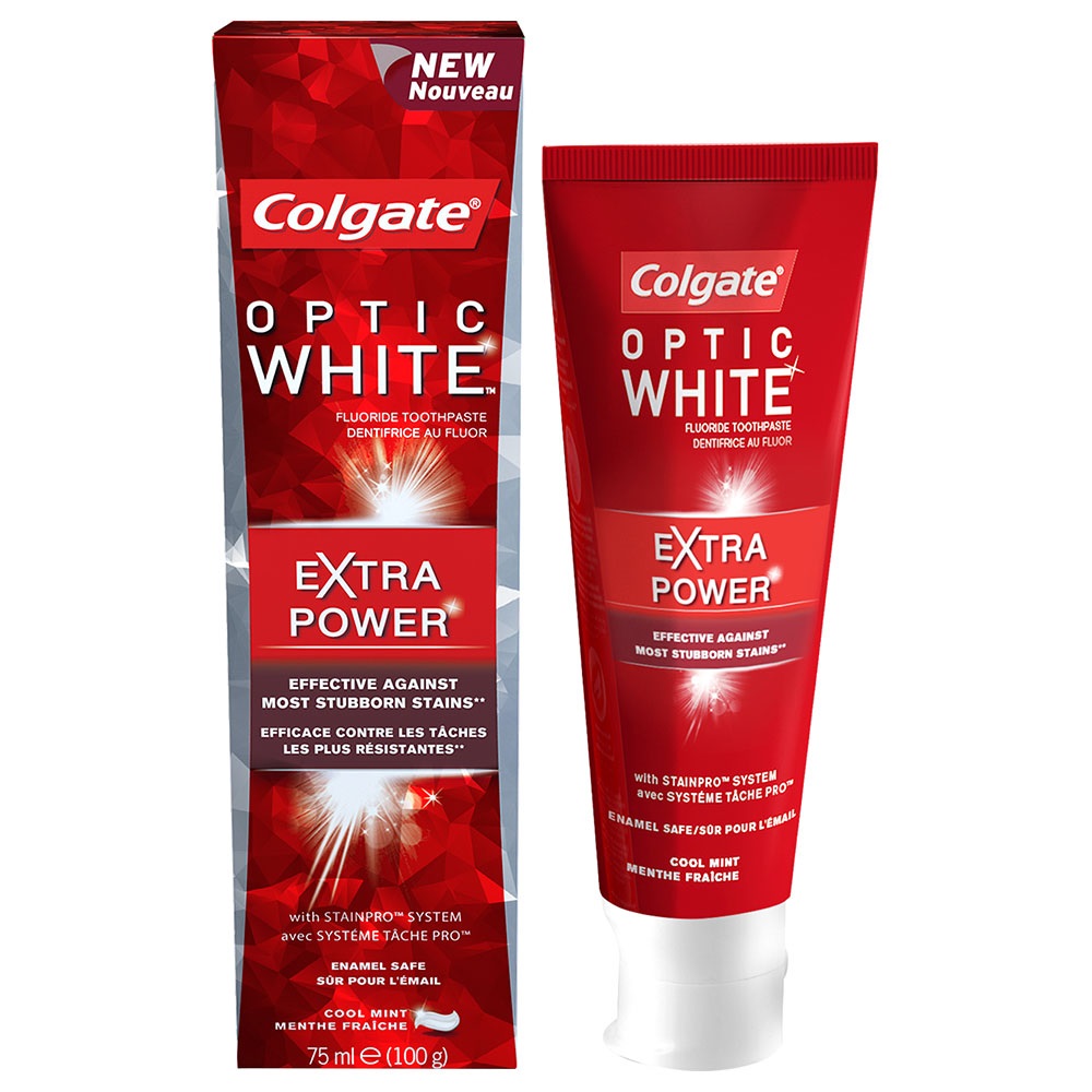 خمیردندان سفیدکننده کلگیت اپتیک وایت اکسترا پاور Colgate Optic Extra Power دارای فرمول باکیفیت و ویژه جهت پاک کردن لک های ناشی از مصرف چای، قهوه و نوشیدنی است و حاوی هیدروژن پروکسید به عنوان ماده موثر پاک کننده جرم های دندان و سفیدکننده می باشد. با استفاده از خمیر دندان سفید کننده کلگیت در یک هفته دندان های شما یک درجه سفیدتر خواهد شد و در چهار هفته نتیجه کامل آن را خواهید دید.