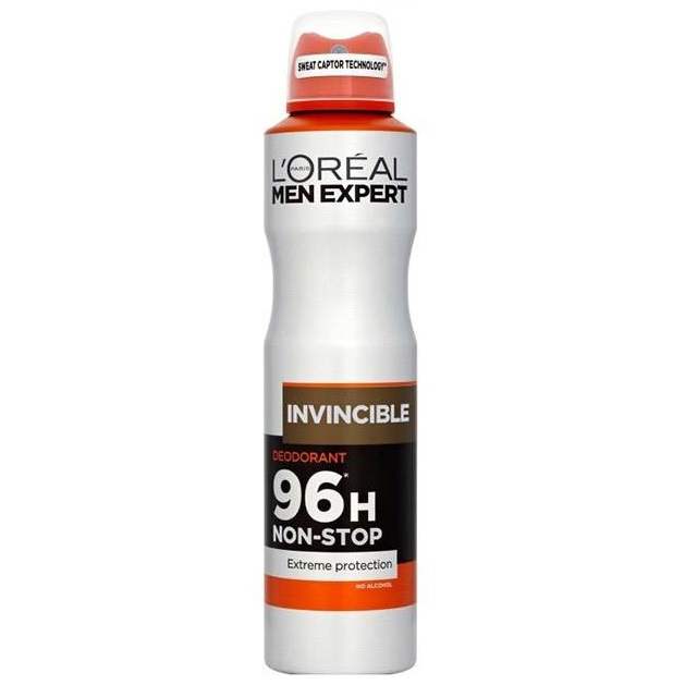 اسپری ضد تعریق مردانه لورآل سری Men Expert مدل Invincible دارای ماندگاری 96 ساعته با خاصیت ضدتعریق و رایحهی خوب، بدن شما را از بوی بد در طول روز محافظت میکند.