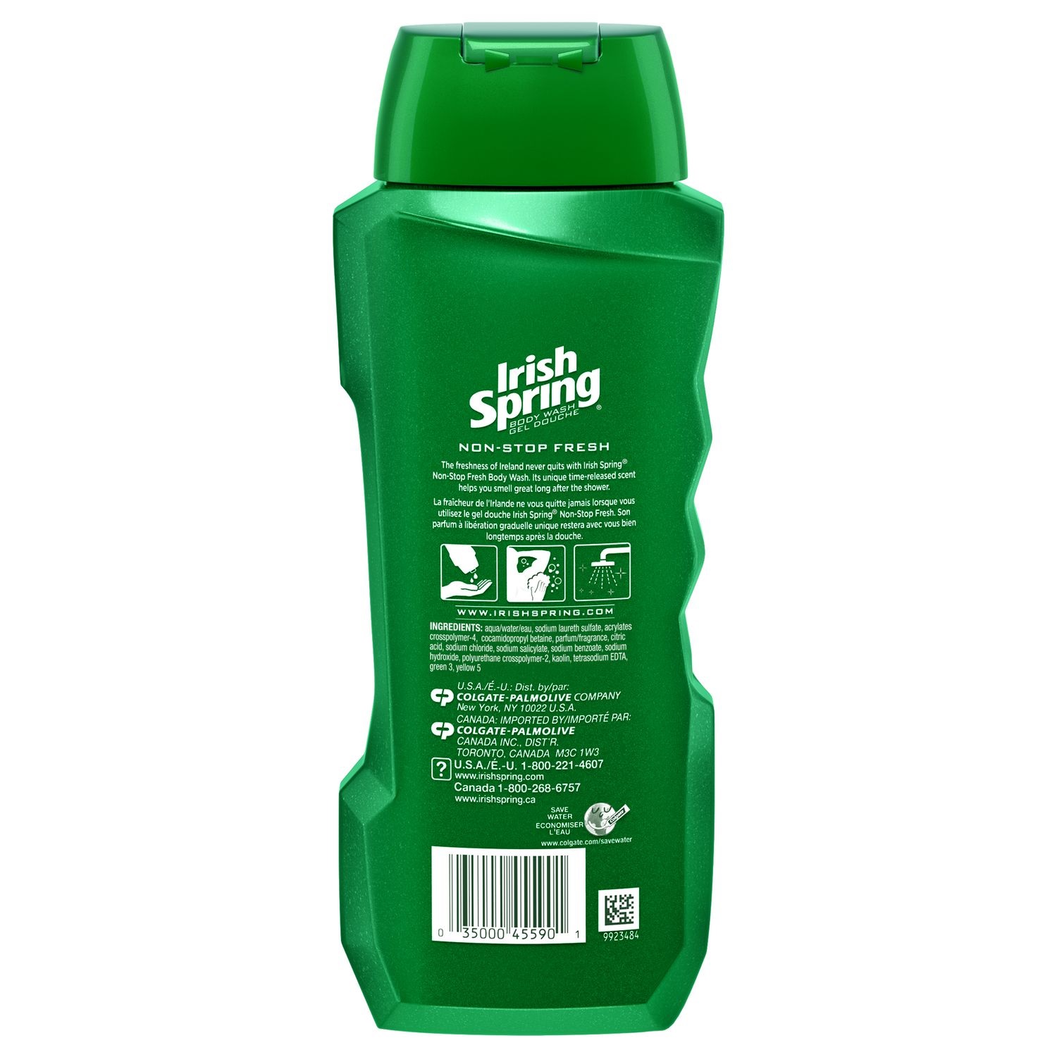 ژل دوش آقایان ایریش اسپرینگ Irish Spring Non-Stop Fresh محصولی بسیار باطراوت و نشاط آور بوده و حاوی تکنولوژی رهاسازی تدریجی رایحه فرش و طراوت بخش به منظور احساس تازگی طولانی مدت و 24 ساعته است. تازگی شامپو بدن ایریش اسپرینگ مانند قرار گیری زیر آبشار خنک و پرطراوت در میانه طبیعت تازه و باطراوت ایرلند است، علاوه بر این تکنولوژی خنثی سازی بوی نامتبوع عرق، محافظت کننده 24 ساعته تازگی شماست.