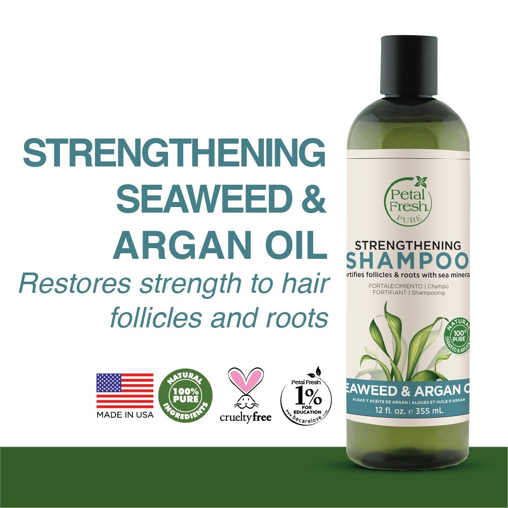 شامپو استحکام بخش جلبک دریایی و روغن آرگان پتال فرش Petal Fresh Seaweed Argan استحکام بخش موهای آسیب دیده و نازک است و نرمی و سلامتی موها را احیا می کند. شامپو استحکام بخش حاوی عصاره های طبیعی از جمله جلبک دریایی است که سرشار از ویتامین ها و مواد معدنی دریایی است که منجر به استحکام بخشی مو از ریشه تا انتها می شود. علاوه بر این روغن آرگان جهت آبرسان، نرمی و درخشندگی موها مورد استفاده قرار گرفته که ظاهری نرم و زیبا را به ارمغان می آورد.