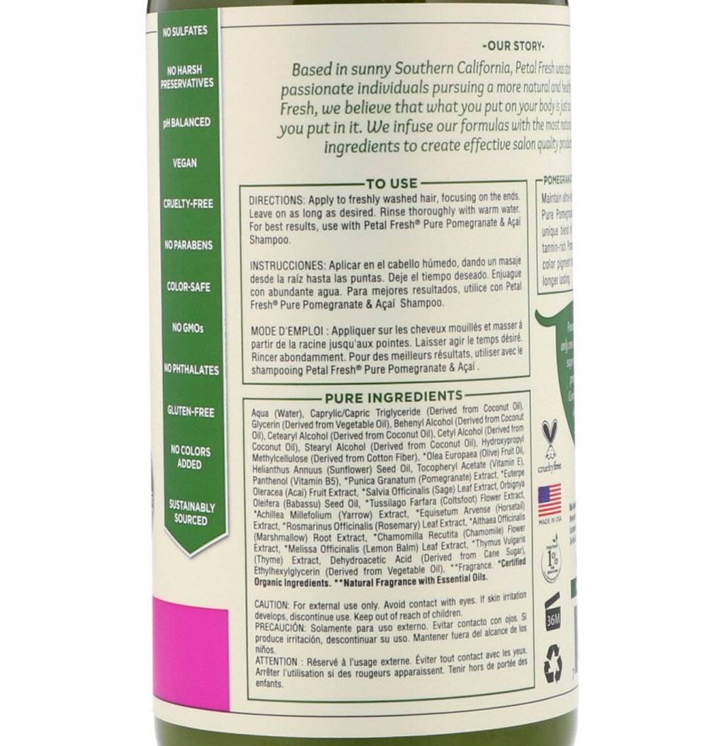 نرم کننده موهای رنگ شده انار و آسای بری پتال فرش Petal Fresh Color Protection محصولی باکیفیت و ارگانیک بوده و ضمن تغذیه و نرمی مو، حاوی فرمول ملایم بوده و از مات شدن رنگ مو جلوگیری می کند. عصاره های ارگانیک انار و نخل آسای محافظت کننده رنگ دانه های مو و درخشان کننده رنگ مو می باشند.