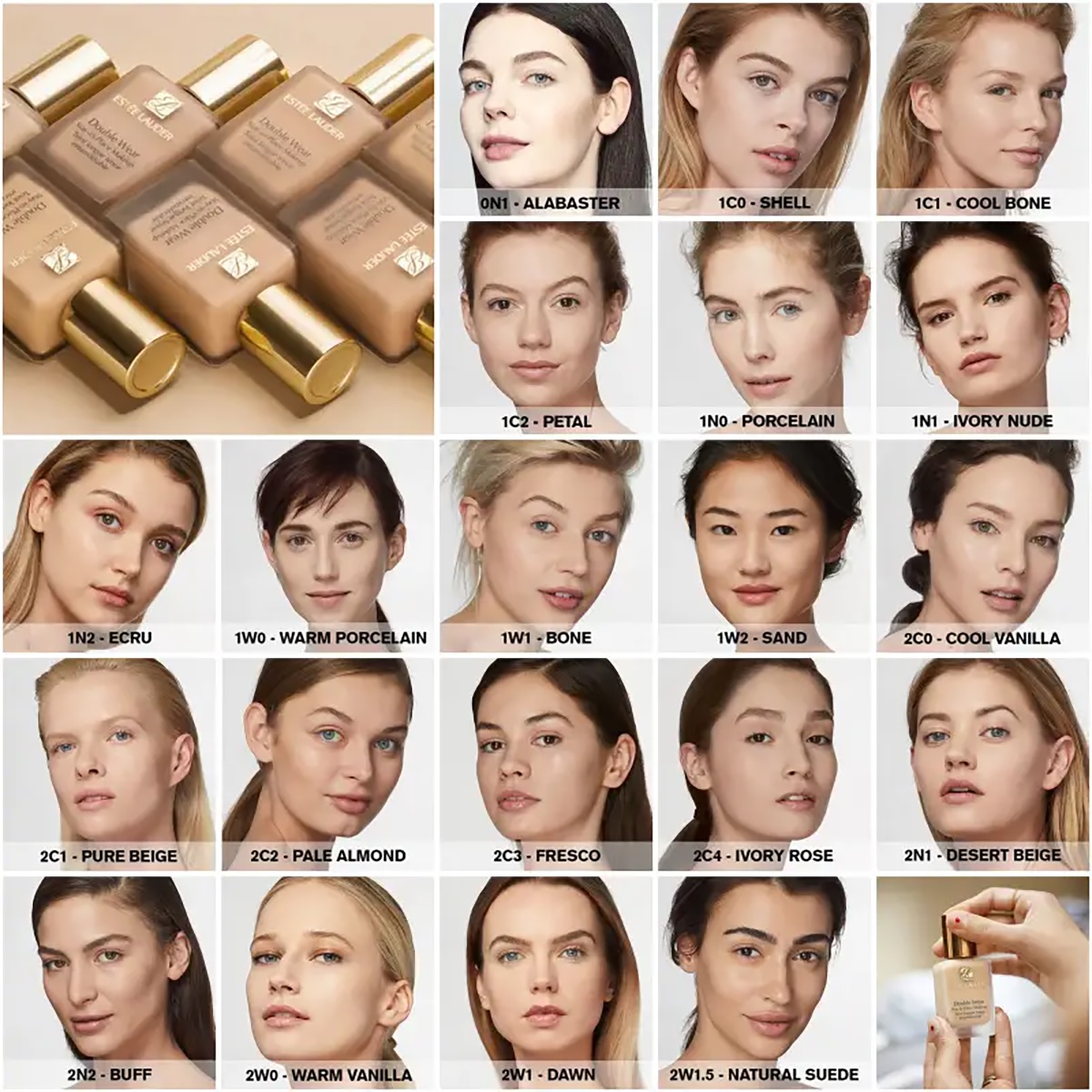 کرم پودر استی لودر دابل ویر Estee Lauder Double Wear Stay in Place شماره 1W1 استخوانی