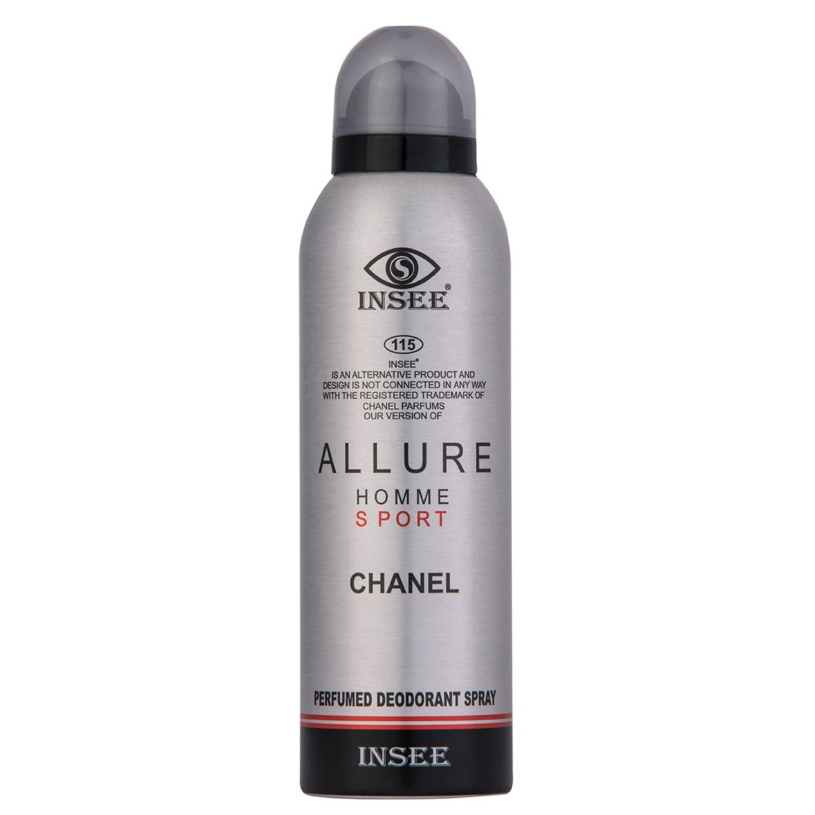 اسپری دئودورانت و خوشبوکننده مردانه برند این سی مدل آلور هوم اسپرت دارای رایحه ی عطر Allure Homme Sport از برند شانل می باشد. اسپری های خوش بو کننده بدن اینسی برای مدت طولانی بدن شما را کاملا معطر و خوش بو نگه می دارد. همچنین موجب ایجاد لکه بر روی لباس ها نمی گردد. رایحه ی این اسپری را وانیل، دانه تونکا، کهربا، مشک، وتیفور و بهارنارنج تشکیل می دهد.