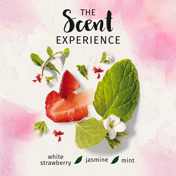 رایحه دلپذیر توت فرنگی، گل یاس و نعناع
