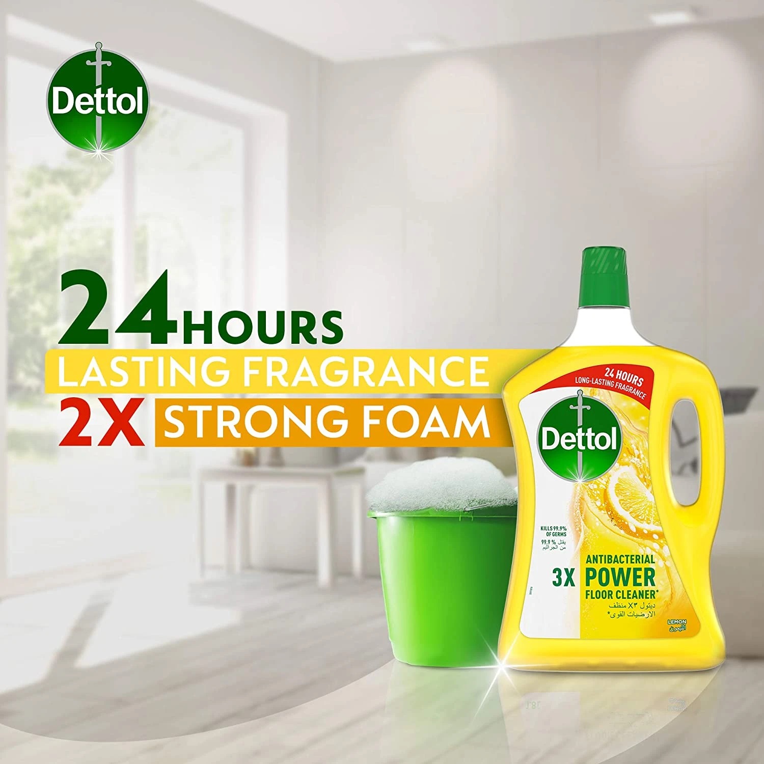 ضدعفونی کننده سطوح دتول Dettol 3X Power Cleaner پاک کننده قوی انواع سطوح بوده و از بین برنده انواع میکروب ها از جمله باکتری E.Coli و ویروس H1N1 است. ضدعفونی کننده دتول ضمن از بین برندن 99.9 درصد میکروب ها، لک و تیرگی سطوح را برطرف کرده و با رایحه ای ماندگار سطوحی تمیز و روشن را تحویل می دهد.