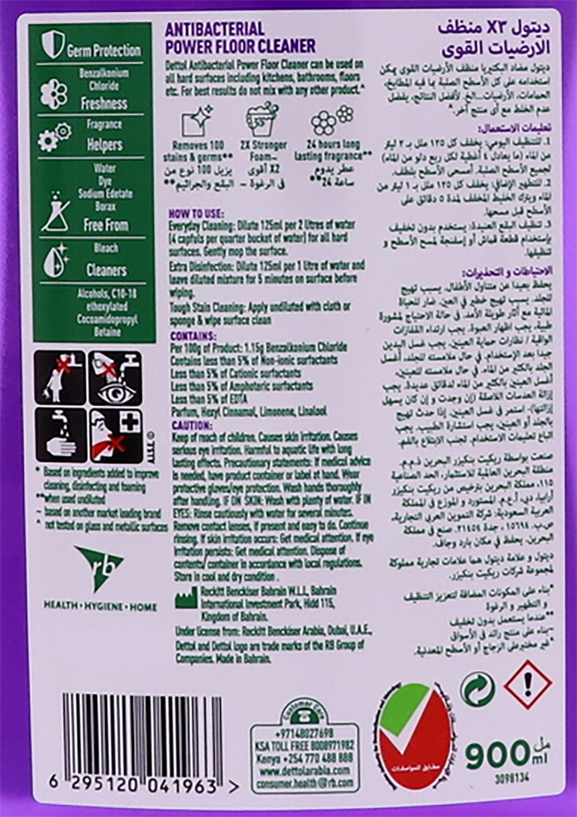 ضدعفونی کننده سطوح دتول Dettol 3X Power Cleaner پاک کننده قوی انواع سطوح بوده و از بین برنده انواع میکروب ها از جمله باکتری E.Coli و ویروس H1N1 است. ضدعفونی کننده دتول ضمن از بین برندن 99.9 درصد میکروب ها، لک و تیرگی سطوح را برطرف کرده و با رایحه ای ماندگار سطوحی تمیز و روشن را تحویل می دهد.