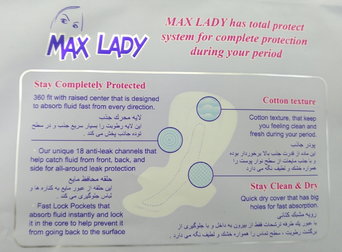 نوار بهداشتی مکس لیدی مدل بالدار نازک ویژه روز (10 عددی)