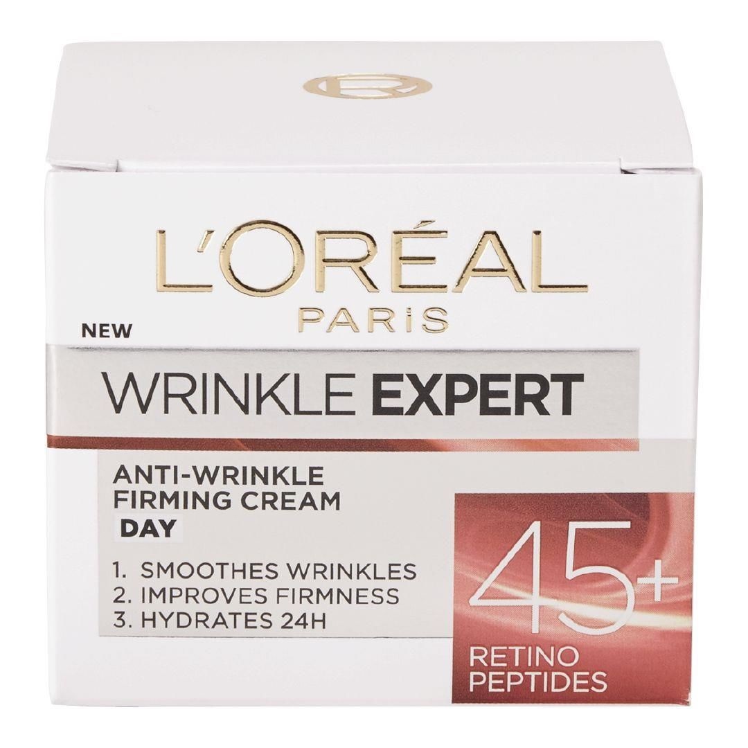 کرم ضدچروک روز لورال رتینول LOreal Wrinkle Expert 45 مناسب برای سن بالای 45 سال و حاوی پپتید رتینول جهت افزایش صافی و سفتی پوست و مقابله با چین و چروک ها و علائم افزایش سن می باشد. پپتید رتینو باعث تولید سلول های جدید و افزایش استحکام و جوانی پوست می شود، کرم ضدچروک لورال علاوه بر این آبرسان 24 ساعته است و با رطوبت رسانی پیوسته از ایجاد چروک ها در اثر کم آبی و خشکی پوست جلوگیری می کند.