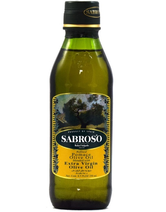 روغن زیتون سابروسو Sabroso Refined Pomace Olive Oil بدست آمده از مزارع زیتون کوردوبا و سویا اسپانیا است و از نوع پومیس تصفیه شده و ترکیب شده با روغن زیتون فرابکر سابروسو می باشد.