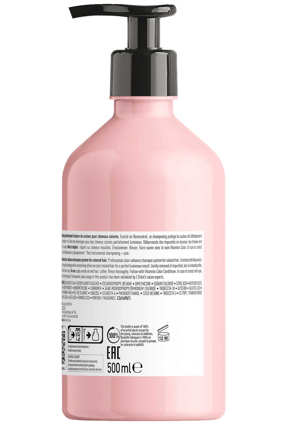 شامپو مراقبت از موهای رنگ شده لورال سری اکسپرت Loreal Vitamino Color دارای فرمول پیشرفته سالنی با الهام از فناوری درمانی و مراقبت از پوست لورال و مواد موثر باکیفیت برای محافظت کنندگی، درخشان کنندگی، لطافت بخشی و حفظ کیفیت و شفافیت موهای رنگ شده می باشد. شامپو اکسپرت لورال حاوی ویتامین ها از جمله پرو ویتامین B5 جهت نفوذ عمیق به ساقه مو و ترمیم و بازسازی آن است، این ترکیب همچنین حاوی ماده موثر Resveratrol به عنوان پلی فنول قدرتمند محافظت کننده فیبر مو در برابر کدر شدن است و به کمک فناوری لاین حرفه ای لورال، موهایی با درخشندگی 6 برابر بیشتر و به زیبایی موهای سالنی خواهیم داشت.