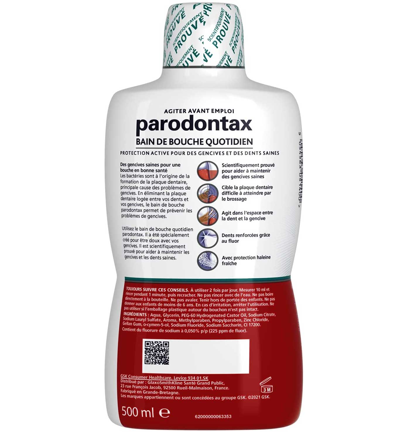 دهانشویه محافظت لثه پارودونتکس Parodontax Gencives Extra Fraiche حجم 500 میلی لیتر