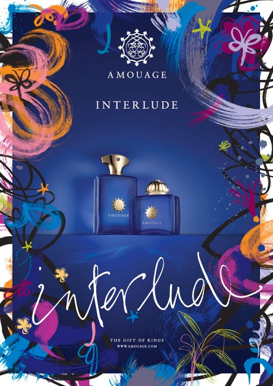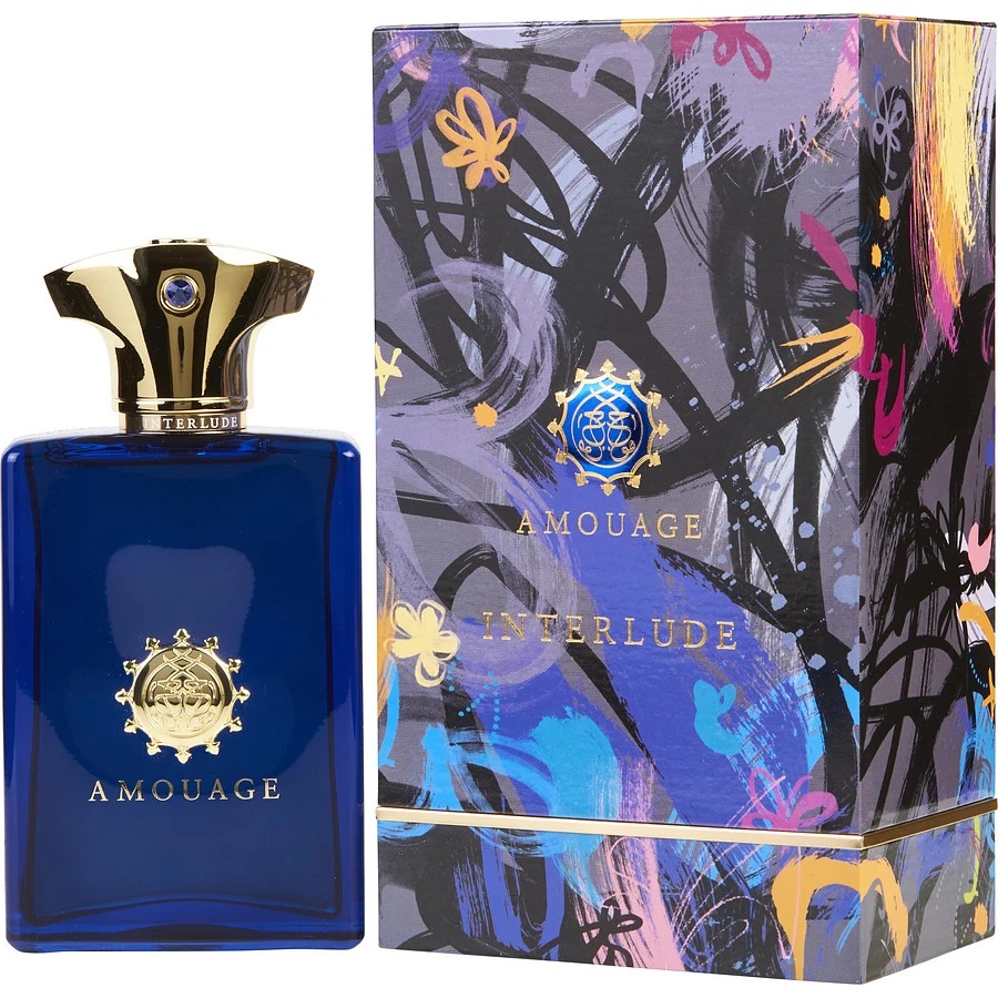 عطر مردانه آمواج اینترلود Amouage Interlude بیانگر احساس میان فاصله آشفتگی و نظم است که انسان برای رسیدن به موفقیت بر آن غلبه می کند. امواج اینترلود در گروه عطرهای چوبی و شرقی به همراه نت های ادویه ای قرار دارد و با رایحه ترنج، فلفل سیاه و مرزنگوش شروع می شود و در میانه راه به رایحه های دودی، کهربا، صمغ اوپوپوناکس و گل لابدانیوم می رسد. پس از حس نت های شرقی و دودی در انتهای مسیر بویایی به چوب صندل، عود، نعناع هندی و چرم می رسیم. در طراحی بطری آمواج اینترلود از تزئینات آب طلا به همراه یاقوت آبی سوارفسکی استفاده شده است.