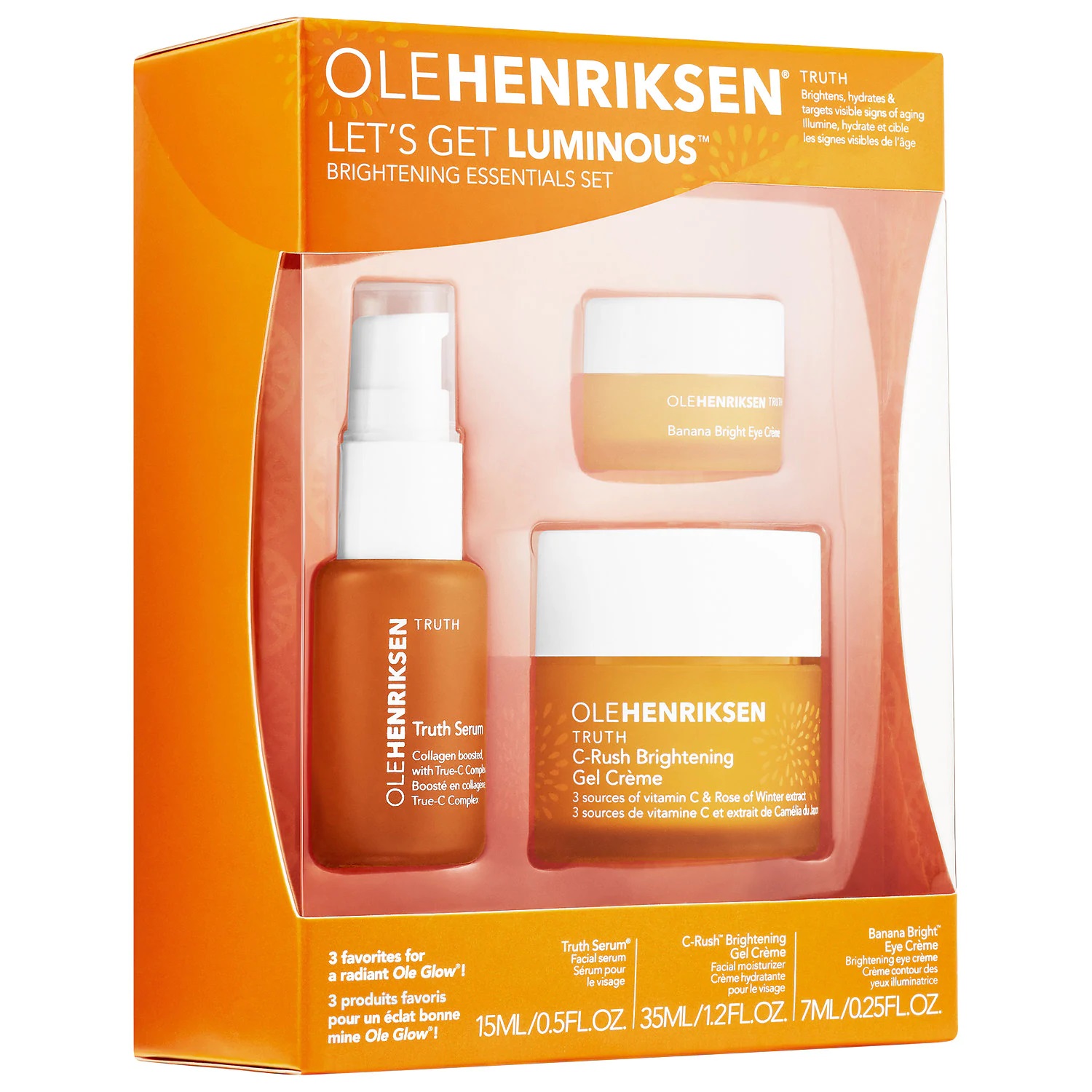 ست روشن کننده اولی هنریکسن Ole Henriksen Lets Get Luminous مجموعه ای باکیفیت و کامل جهت روشن کنندگی و مراقبت پوست می باشد. ست لومینوس اولی هنریکسن شامل ژل کرم روشن کننده ویتامین سی به حجم 35 میلی لیتر، کرم دور چشم روشن کننده به حجم 7 میلی لیتر و سرم روشن کننده ویتامین سی به حجم 15 میلی لیتر است.