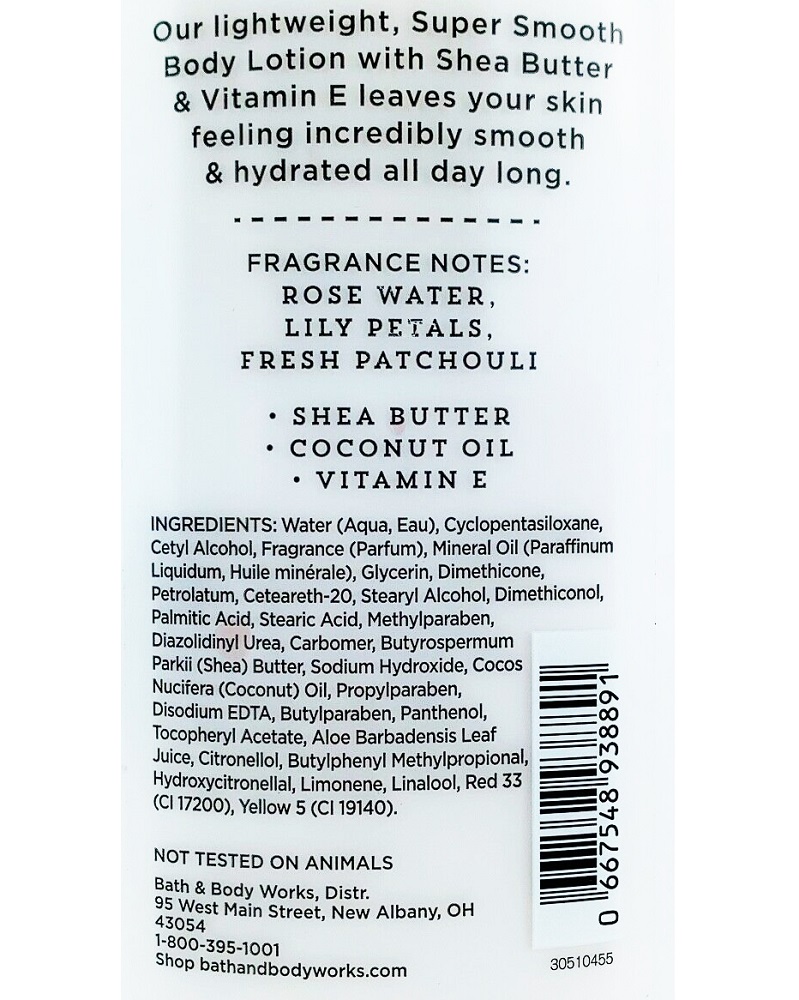 لوسیون بدن چای سفید و زنجبیل بث اند بادی ورکس White Tea and Ginger محصولی باکیفیت از برند بث اند بادی ورکس است که دارای رایحه دلپذیر گل رز، گل سوسن و نعناع هندی تازه است. لوسیون بدن بث اند بادی ورکس حاوی شی باتر جهت تغذیه، آبرسانی و نرمی پوست بوده و علاوه بر این حاوی ویتامین E جهت محافظت کامل از پوست می باشد. استفاده از لوسیون بدن بث اند بادی ورکس با رایحه بسیار دلپذیر برای استفاده روزانه پس از استحمام بسیار خوشایند است.
