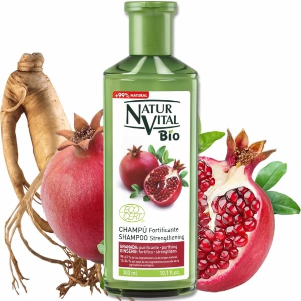 شامپو استحکام بخش انار و جینسینگ نیچرویتال NaturVital Strengthening محصولی طبیعی جهت افزایش استحکام مو، تقویت ریشه و فیبر مو، جلوگیری از ریزش و کمک به رشد مو می باشد. شامپو استحکام بخش نیچر ویتال حاوی 99 درصد عصاره های طبیعی گواهینامه دار است که بیش از 10 درصد آن ها به صورت ارگانیک پرورش یافته اند. عصاره انار موجود در شامپو سرشار از آنتی اکسیدان با خواص بازسازی کننده مو و جلوگیری از فرایند اکسیداسیون و ضعیف شدن موها می باشد و علاوه بر این درخشندگی و کیفیت رنگ مو را حفظ می کند. عصاره جیسنیگ نیز با انرژی بخشی و تقویت ریشه مو به کاهش ریزش مو و افزایش رشد مو کمک می کند.