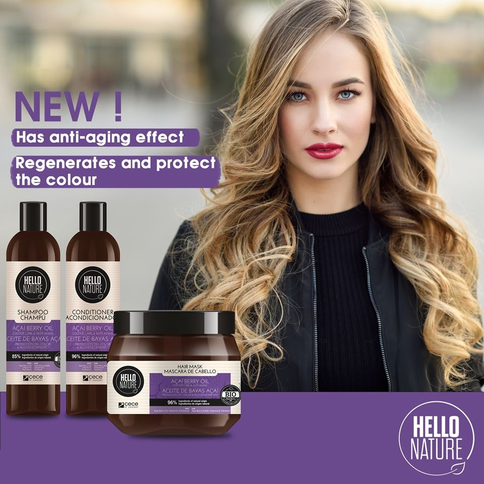ماسک مراقبت از موهای رنگ شده آسای بری هلو نچر Hello Nature Acai محصولی بسیار خوب حاوی 96 درصد عصاره های با منشاء طبیعی است و برای مراقبت از موهای رنگ شده و خاصیت ضدپیری مناسب می باشد. ماسک موی آسای بری هلو نچر حاوی روغن آسای بری غنی از آنتی اکسیدان است که ضمن درخشان کنندگی موها، مقابله کننده با ضعیف شدن موها می باشد و موهای منعطف، خوش حالت و درخشان را به ارمغان می آورد.