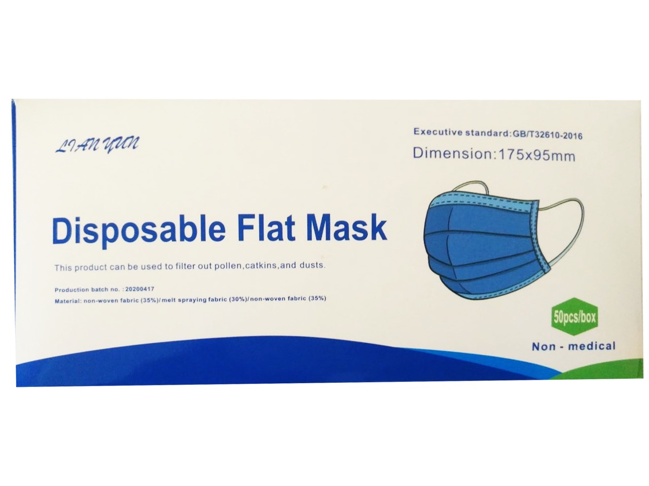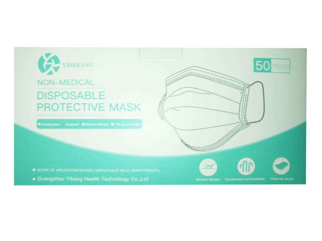 ماسک صورت سه لایه Disposable Protective Mask دارای 3 لایه محافظ و استاندارد GBT32610-2016 با ابعاد 175 میلی متر در 95 میلی متر و رنگ سفید و ساخت چین می باشد.