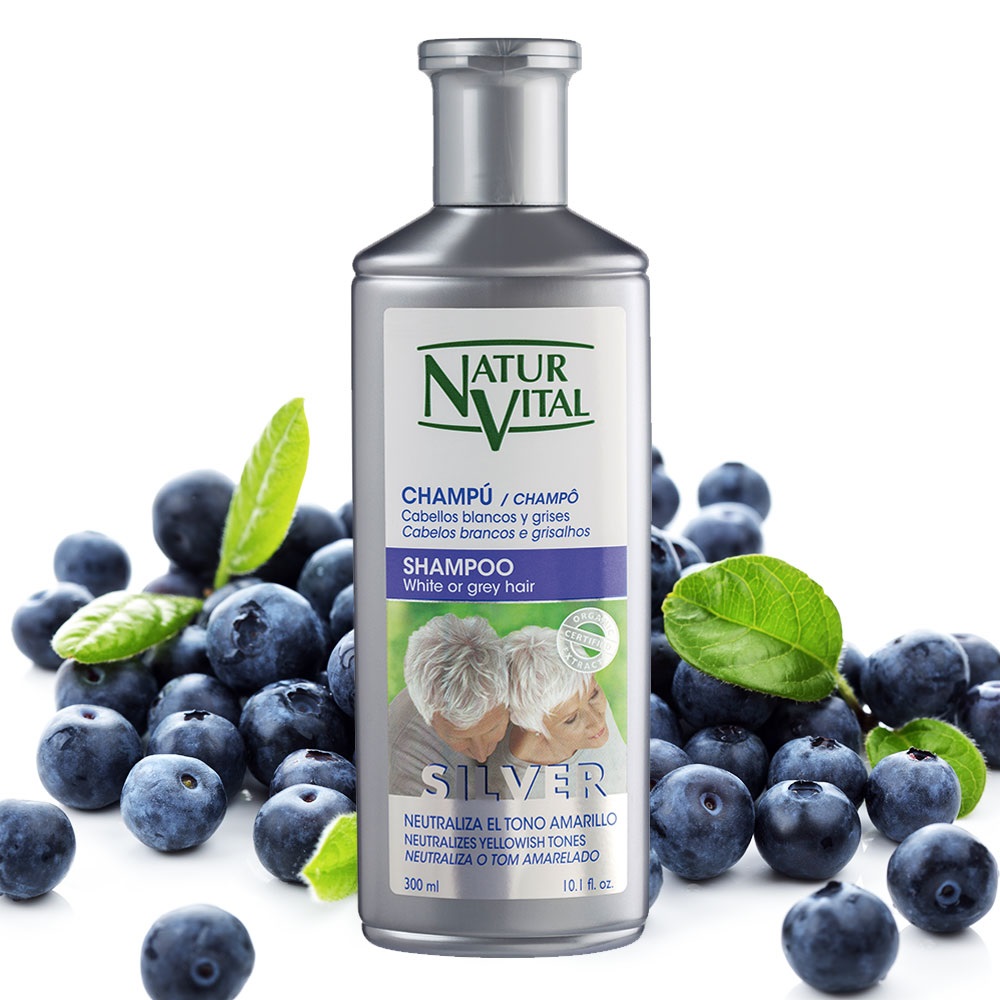 شامپو ضدزردی موهای سفید نیچرویتال سیلور NaturVital Silver حاوی عصاره های طبیعی جهت آبرسانی و خنثی کردن تناژ زرد و نارنجی ایجاد شوند در موهای سفید و خاکستری در اثر اکسیداسیون می باشد. شامپو موهای سفید و خاکستری نیچرویتال حاوی عصاره بلوبری ارگانیک گواهینامه دار سرشار از رنگدانه های آبی جهت خنثی کردن تناژ زرد و همچنین حاوی عصاره حنا جهت درخشندگی موها می باشد. علاوه بر این پرو ویتامین B5 نیز به ترمیم و بازسازی موها کمک کرده و موهای آبرسانی شده و درخشان را به ارمغان می آورد.