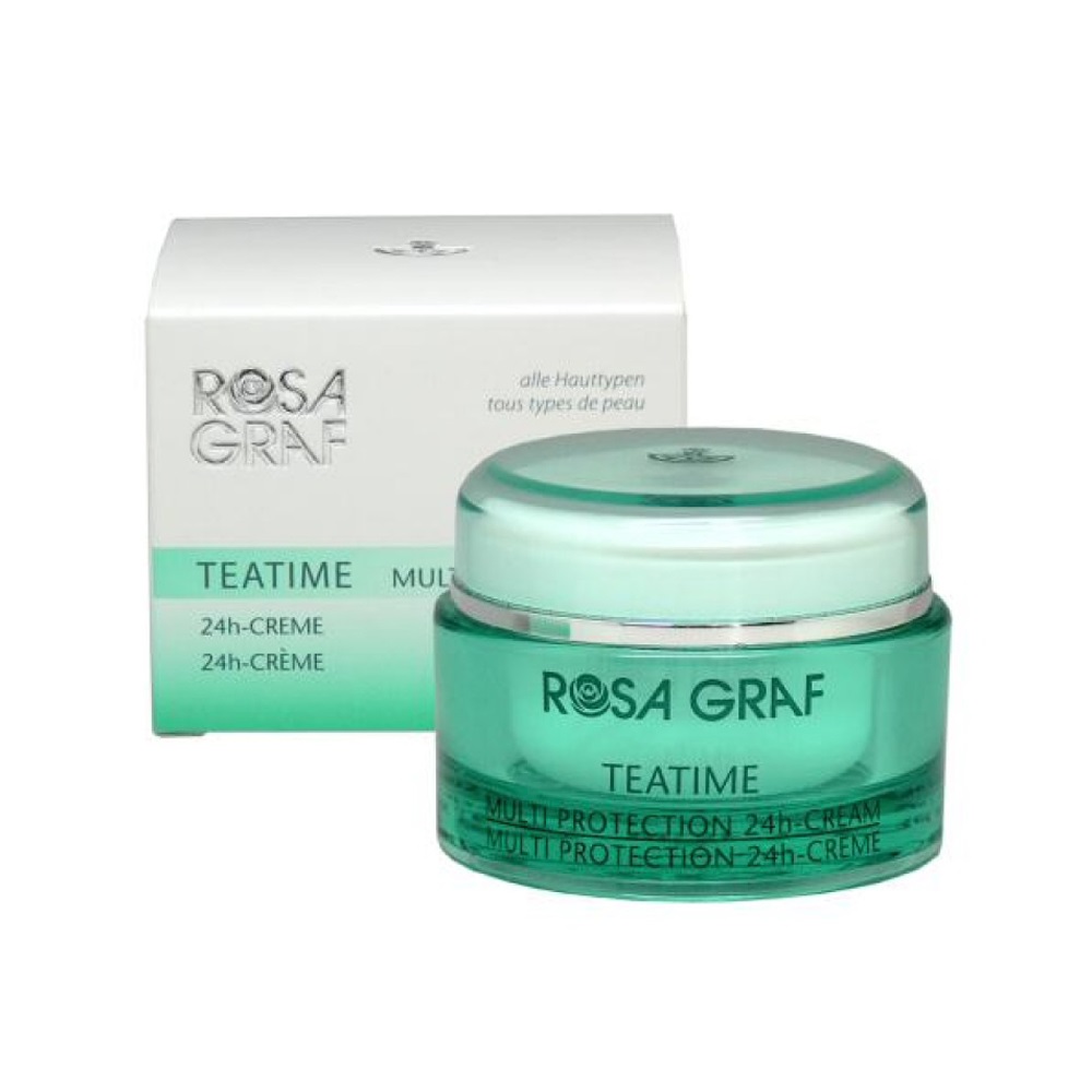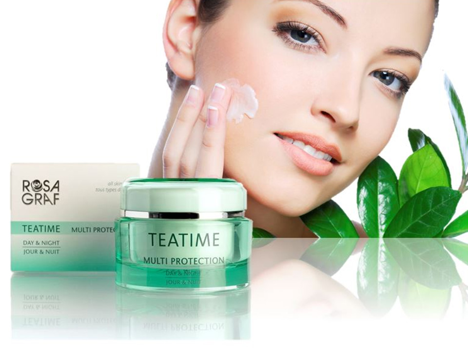 کرم محافظت کننده چای سبز رزا گراف تی تایم Rosa Graf Teatime محصولی طبیعی و حاوی تمام خواص خوب چای سبز جهت محافظت چندگانه از پوست در برابر فرایند افزایش سن و عوامل محیطی می باشد. عصاره چای سبز چینی غنی از آنتی اکسیدان جهت مقابله با رادیکال های آزاد بوده و همچنین به طرز شگفت انگیزی بر روی پوست پخش می شود و باعث جذب فوری رطوبت در لایه های سلولی فوقانی می شود و همین امر باعث می شود پوست فربه تر و پر از رطوبت شده و به طور قابل توجهی نرم و نرم تر شود. مواد موثر دیگر کرم محافظت کننده رزا گراف شامل روغن جوجوبا و روغن دانه نخل باباسو، درختی در جنگل های بارانی آمازون غنی از اسیدهای چرب با خواص جذب فوری و تسکین التهاب، نرمی کنندگی و رطوبت رسانی لایه های زیرین پوست است، این فرمولاسیون ملایم برای تسکین پوست های حساس بسیار مناسب می باشد.
