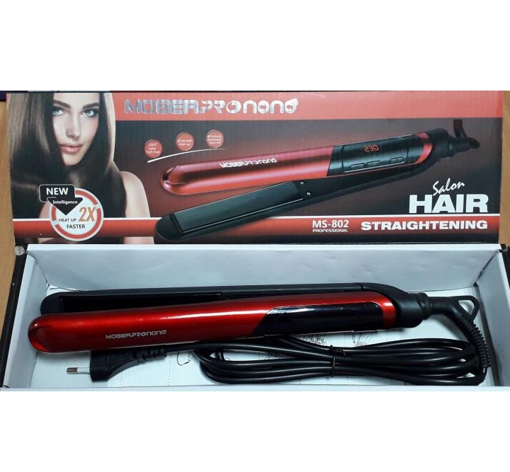 اتو موی موزر Moser Pro nono MS-802 محصولی باکیفیت جهت حالت دهی موهای صاف، موجدار و فر می باشد. اتو موی موزر دارای صفحات سرامیکی جهت کمترین استحکاک و استفاده آسان و درخشان کنندگی موها می باشد. علاوه بر این درجه حرارت قابل تنظیم در 5 سطح بین 150 تا 230 درجه سانتی گراد به همراه نمایشگر LED از دیگر ویژگی های قابل توجه MS-802 است. علاوه بر این ویژگی مهم دیگر آن طراحی صفحات به صورت گرد است که برای ایجاد فرهای زیبا بسیار مناسب است.
