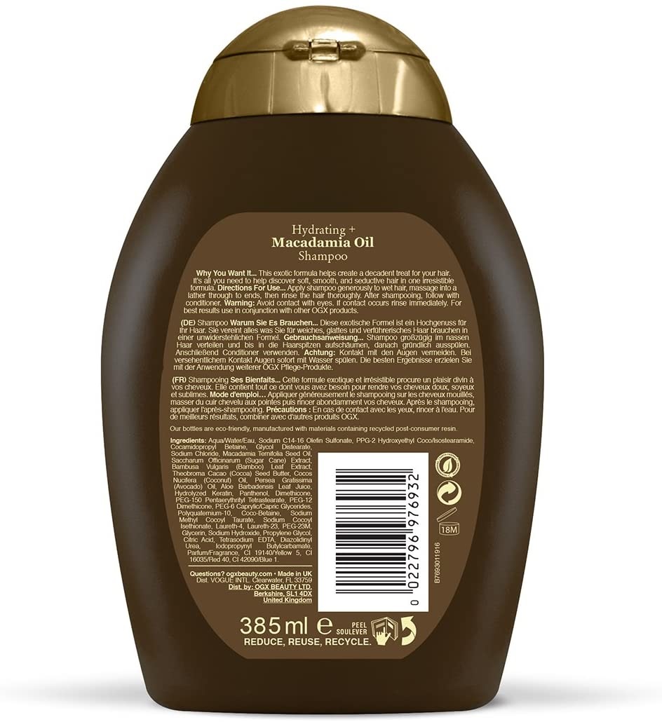 شامپو آبرسان روغن ماکادمیای او جی ایکس Ogx Macadamia Oil حجم 385 میلی لیتر