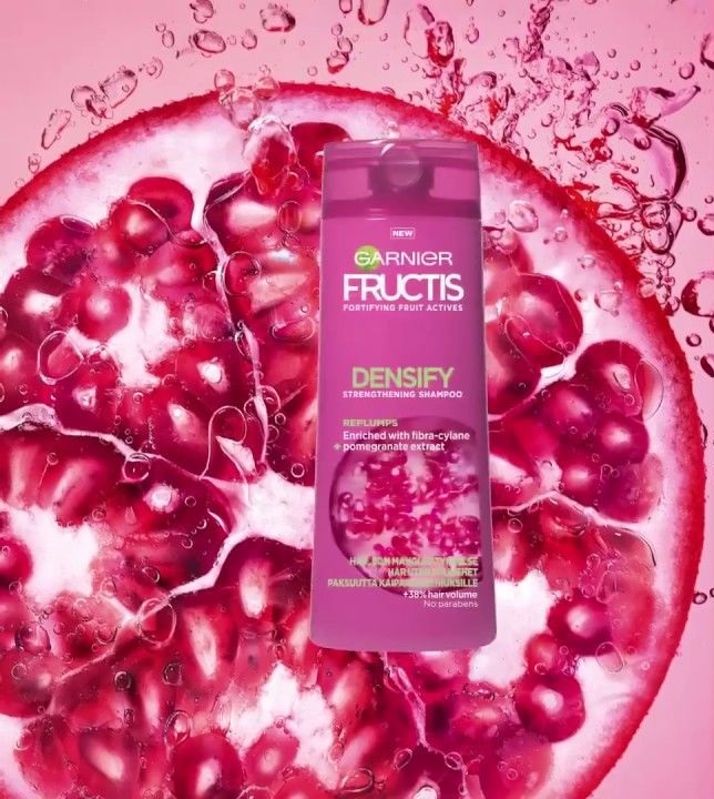 شامپو تقویت کننده و استحکام بخش انار گارنیه Garnier Densify حاوی فرمول ویژه جهت تقویت و افزایش ضخامت تارهای مو می باشد. شامپو دنسیفای گارنیه حاوی عصاره انار غنی از آنتی اکسیدان و فیبروسیلان (فیلوکسان) جهت نفوذ در فیبر مو و افزایش ضخامت و استحکام آن می باشد. عصاره های دیگر موجود در این شامپو شامل پروتئین لیمو، ویتامین B3 و ویتامین B6 جهت استحکام بخشی و احیای سلامتی و انعطاف پذیری موها می باشد.