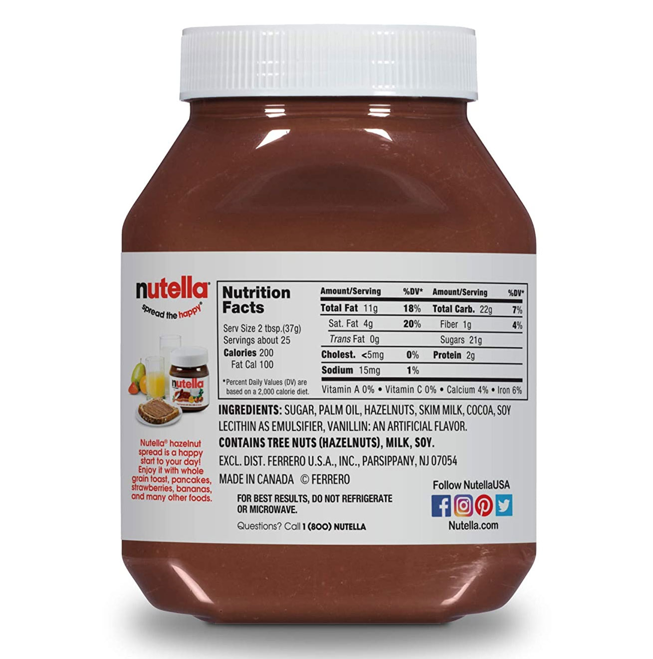 شکلات فندقی صبحانه نوتلا Nutella Spread تهیه شده از مواد با بالاترین کیفیت و بدون رنگ و مواد نگهدارنده مصنوعی است و برای صبحانه و یا میان وعده گزینه ای بسیار خوشمزه است. مواد سازنده شکلات نوتلا شامل شکر، روغن خرما، فندق، شیر، کاکائو، سویا و وانیلین می باشد.