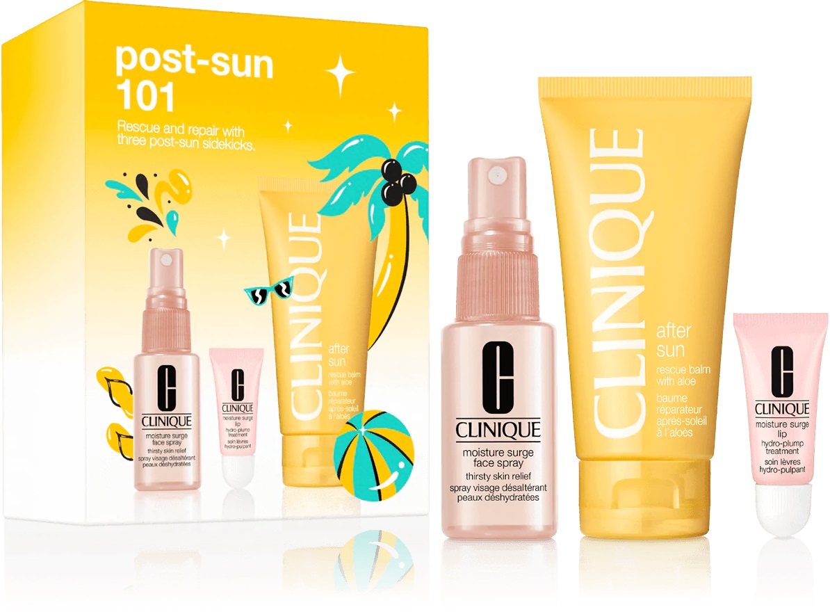 ست مراقبت بعد از آفتاب کلینیک Clinique Post Sun 101 حاوی سه محصول طراوت بخش جهت محافظت و نجات پوست در برابر آسیب ناشی از آفتاب می باشد که در ادامه به معرفی هر یک می پردازیم.