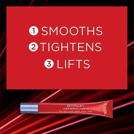 کرم دور چشم لورال رویتالیفت لیزر LOreal Revitalift Laser دارای فرمول پیشرفته با عملکرد سه گانه پرکنندگی خطوط و چروک های دور چشم، کاهش کیسه های زیر چشم و افزایش سفتی و لیفتینگ پوست می باشد. کرم دور چشم و ضدپیری لورال لیزر حاوی هیالورونیک اسید با سایز ملکولی کوچک شده جهت نفوذ و جذب آسان در منافذ پوست و صاف کردن چروک ها و لیفتینگ پوست می باشد. ماده موثر دیگر فرمول کرم لیزر شامل پرو زیلان نوعی سلولز بدست آمده از جلبک دریایی جهت کاهش چروک و فرم دهی مجدد ظاهر شاداب و جوان پوست می باشد. نتیجه استفاده از کرم لورال رویتالیفت پس از 3 هفته چروک ها کاهش یافته و پس از 4 هفته پوست سفت تر و لیفت شده به همراه شفافیت بیشتر محصولی کاربردی را حاصل شده است.