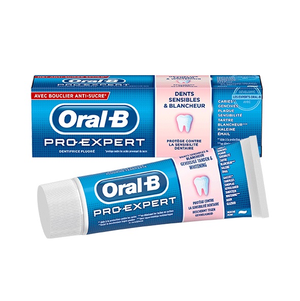 خمیردندان سفیدکننده دندان های حساس اورال بی پرو اکسپرت Oral B Pro Expert دارای فرمول حرفه ای جهت سفیدکنندگی با مراقبت ویژه از دندان های حساس می باشد. خمیردندان پرو اکسپرت اورال بی حاوی فلورین به همراه یون قلع جهت ایجاد لایه محافظ و پوشش و ترمیم حساسیت های دندانی است، هشت عملکرد پرو اکسپرت بدین صورت است: