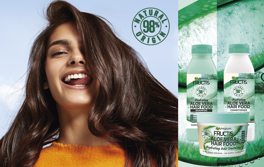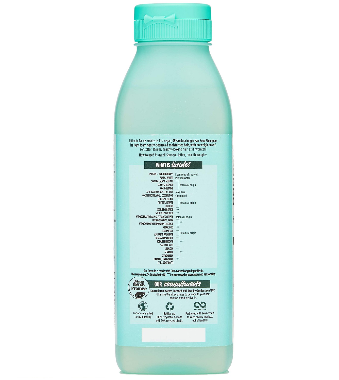 شامپو آبرسان آلوئه ورای گارنیه هیر فود Garnier Hydrating Aloe Vera دارای فرمول رطوبت رسان و حاوی 98 درصد عصاره های طبیعی از میوه های سوپر فودز جهت آبرسانی قوی و سریع موهای دهیدراته و نرمال می باشد. شامپو آبرسان گارنیه حاوی آب آلوئه ورا با خواص آبرسانی و بازگرداندن رطوبت از دست رفته موها بوده و به سرعت موها را منظم و قابل مدیریت می کند، علاوه بر این حاوی روغن نارگیل جهت احیای سلامتی، رساندن مواد مغذی مورد نیاز فیبر مو و افزایش انعطاف پذیری آن می باشد.