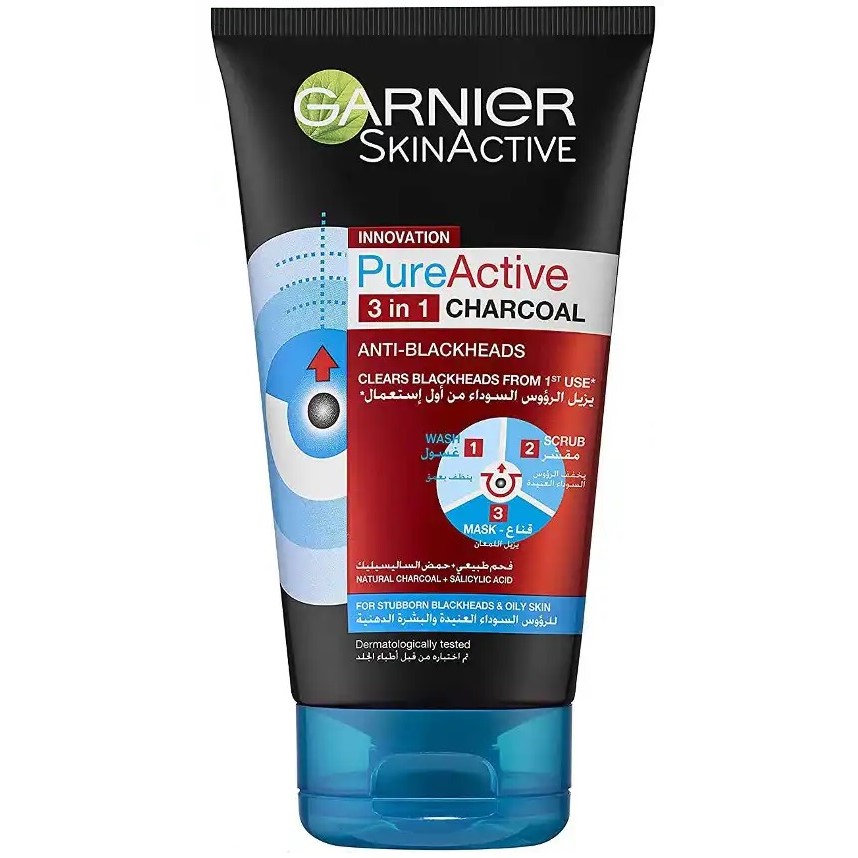 شوینده صورت سه کاره پوست چرب ذغالی گارنیه Garnier Pure Active 3 in 1 دارای سه عملکرد پاک کنندگی پوست های چرب و پاکسازی جوش های سرسیاه است که قابل استفاده به عنوان پاک کننده صورت، اسکراب و ماسک می باشد. فیس واش گارنیه حاوی سالیسیلیک اسید به عنوان آنتی باکتریال جهت مقابله با جوش و جلوگیری از ایجاد جوش، ذرات لایه بردار طبیعی به عنوان دانه های اسکراب و ذغال فعال شارکل جهت قوی جذب چربی اضافی پوست، متعادل سازی ترشح چربی سبوم و مات کنندگی پوست می باشد.