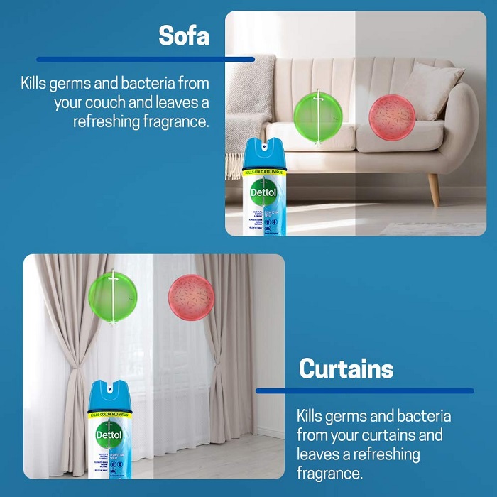 اسپری ضدعفونی کننده سطوح دتول Dettol Disinfectant محصولی باکیفیت و مطمئن جهت از بین بردن انواع ویروس ها، میکروب ها و باکتری های انواع سطوح می باشد. اسپری ضدعفونی کننده دتول دارای فرمولاسیون بر پایه الکل است و با خاصیت آنتی باکتریال و رایحه دلپذیر شکوفه های بهاری، تمیزی و حس تازگی فضای زندگی را به ارمغان می آورد و علاوه بر سطوح برای ضدعفونی کردن هوا به همراه رایحه تازه نیز بسیار مناسب است.