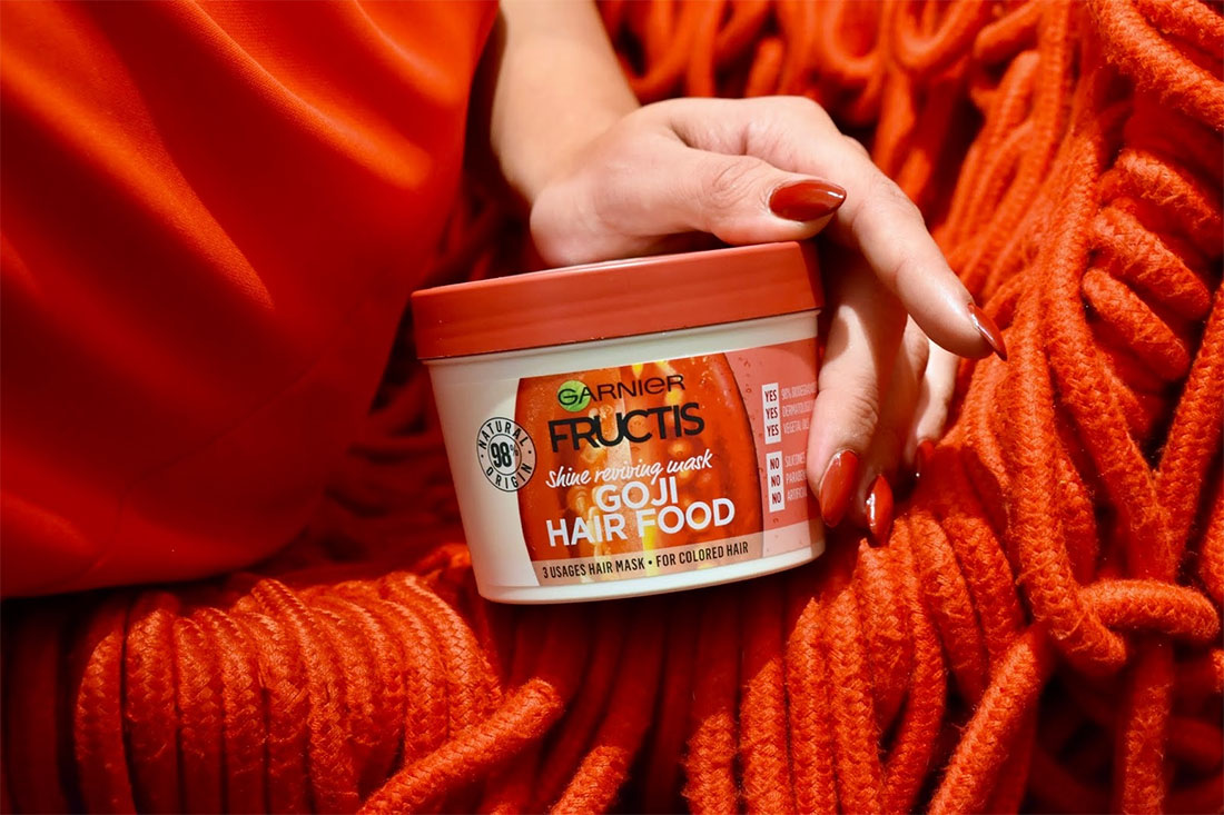 ماسک موهای رنگ شده سه کاره گوجی بری گارنیه هیر فود Garnier Goji حجم 390 میلی لیتر