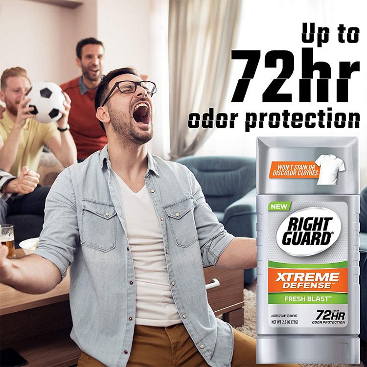 استیک ضدتعریق رایت گارد اکستریم دیفنس Xtreme Defense Fresh Blast دارای فرمول با عملکرد بالا جهت مقابله با 5 نشانه ناخوشایند تعریق از جمله: بوی نامتبوع، ایجاد خیسی، چسبندگی، ایجاد باکتری و نشانه های روی لباس است. استیک ضدتعریق رایت گارد ضمن خنثی سازی باکتری های ایجاد کننده بوی نامتبوع عرق، محافظت کننده طولانی مدت 72 ساعته را فراهم می کند. این فرمول به همراه بافت جامد نرم و رایحه تازه مرکبات به همراه ادویه جات و نت های انتهایی کهربای ملایم، حس تازگی طولانی مدت را به ارمغان می آورد.