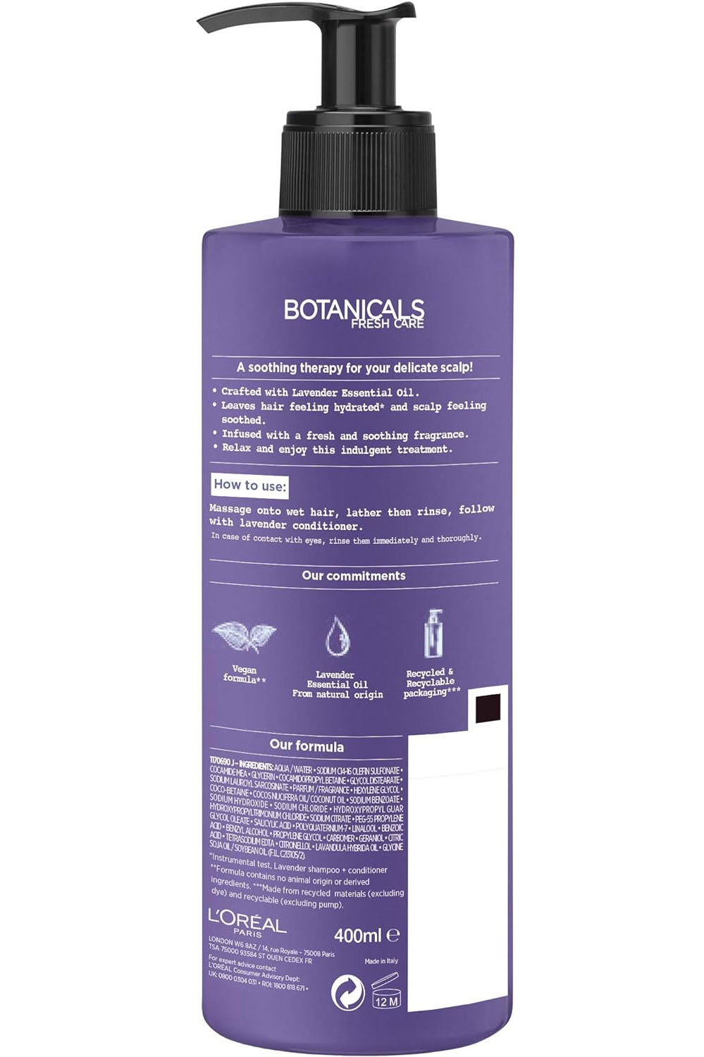 شامپو گیاهی تسکین دهنده و آبرسان لاوندر لورال LOreal Soothing Therapy حاوی عصاره های طبیعی از لاین محصولات بوتانیک لورال جهت تسکین و آرامش بخشی پوست سر حساس و آبرسانی موهای نرمال و شکننده می باشد. شامپو بوتانیک فرش لورال حاوی روغن ارگانیک لاوندر (اسطوخودوس) جهت تسکین و آرامش بخشی پوست سر حساس بوده و علاوه بر این حاوی روغن نارگیل و سویا جهت آبرسانی و احیای موهای نیازمند رطوبت می باشد. همه افراد درگیر در چرخه تولید این محصول از کشاورز تا گیاه شناس و شیمیدان تمامی تخصص خود را به کار گرفته اند تا فرمولی با بیشترین کیفیت و بدون سولفات، پارابن، سیلیکون و رنگ مصنوعی حاصل شود.