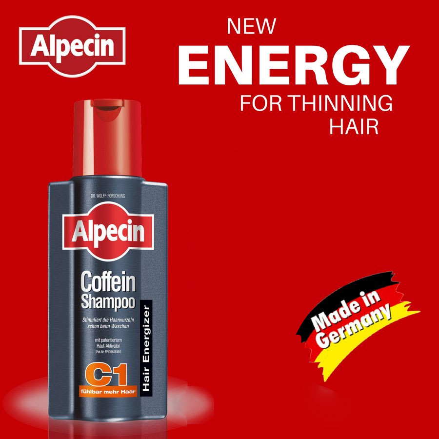 شامپو تقویت کننده و ضدریزش کافئین آلپسین Alpecin C1 دارای فرمول پیشرفته توسعه یافته در آزمایشگاه دکتر ولف مناسب برای تقویت موهای ضعیف و نازک و کاهش ریزش مو می باشد. شامپو کافئین آلپسین C1 دارای ترکیب انحصاری ثبت شده جهت فعالسازی فرایند رشد مو است، این فرایند همراه با افزایش ضخامت و استحکام موها همراه است. شامپو کافئین آلپسین پس از سال ها تحقیق بر روی الگوی رشد مو، موثرترین و دقیق ترین فرمول و دوز مواد تشکیل دهنده را جهت جلوگیری از ریزش و افزایش ضخامت موها در خود جای داده است. این ترکیب علاوه کافئین جهت تقویت و انرژی بخشی مو، حاوی پنتنول (پرو ویتامین B5)، نیاسین آمید (پرو ویتامین B3)، پروتئین هیدرولیز شده گندم و نعناع جهت تقویت ریشه مو و تسکین پوست سر می باشد.