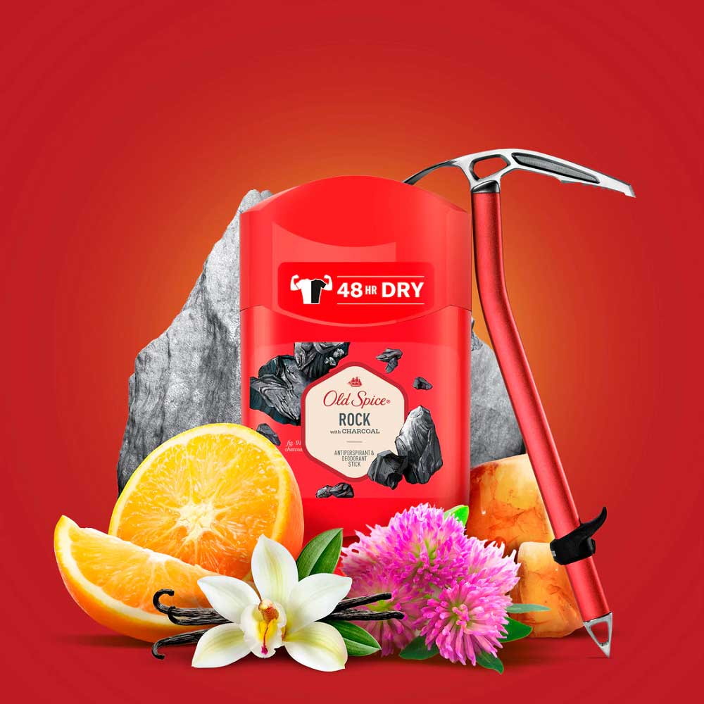استیک ضدتعریق اولد اسپایس راک Old Spice Rock محافظت کننده 48 ساعته خشکی و تازگی زیر بغل به همراه تکنولوژی مقاومت در برابر محو شدن رایحه جهت حس شادابی و تازگی طولانی مدت می باشد. استیک دئودورانت راک همچنین حاوی ذغال فعال جهت خنثی سازی باکتری های ایجاد کننده بوی نامتبوع عرق بوده و به همراه رایحه دلپذیر و انرژی بخش حس قدرتمند و شادابی را به ارمغان می آورد.