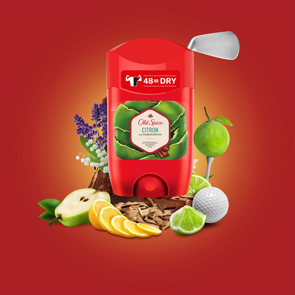 استیک ضدتعریق اولد اسپایس سیترون Old Spice Citron محافظت کننده 48 ساعته خشکی و تازگی زیر بغل به همراه تکنولوژی مقاومت در برابر محو شدن رایحه جهت حس شادابی و تازگی طولانی مدت می باشد. استیک دئودورانت سیترون همچنین حاوی رایحه چوب صندل بوده و حس بازگشت به طبیعت و جنگل را در درونمان احیا می کند.