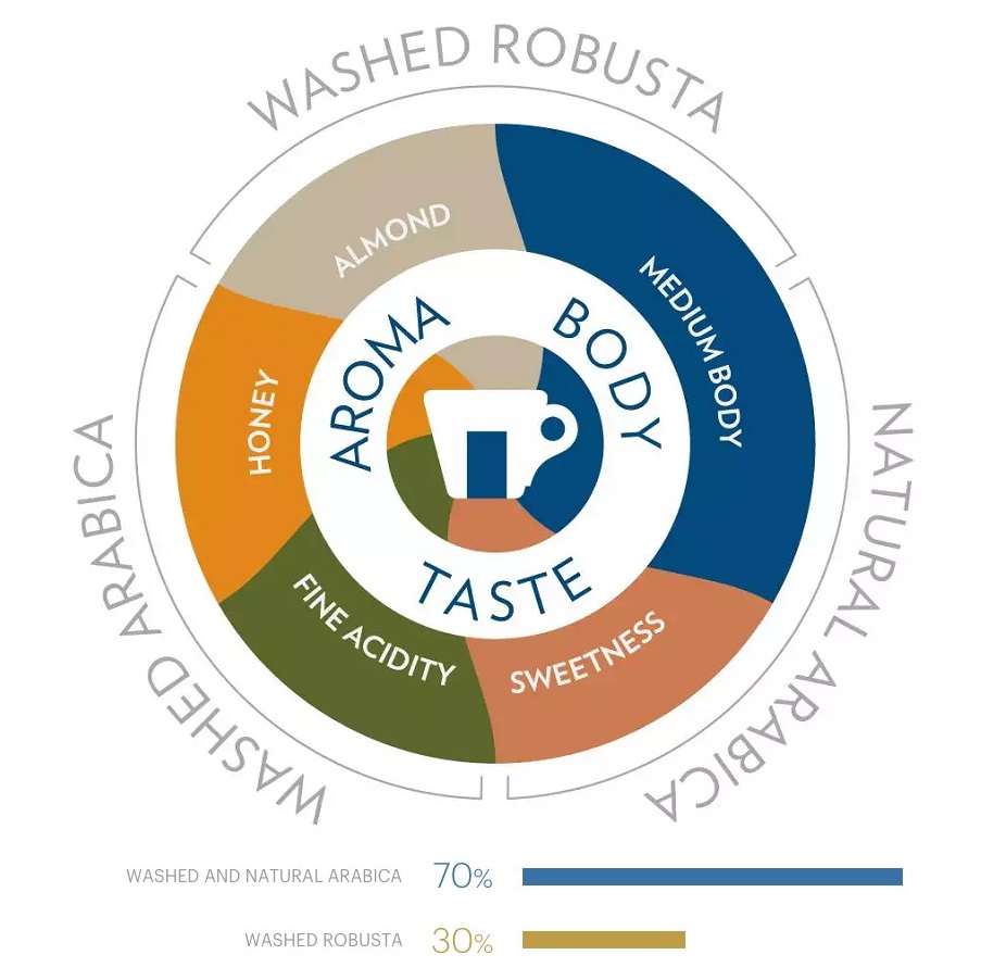 شامل 70 درصد قهوه عربیکا و 30 درصد قهوه ربوستا