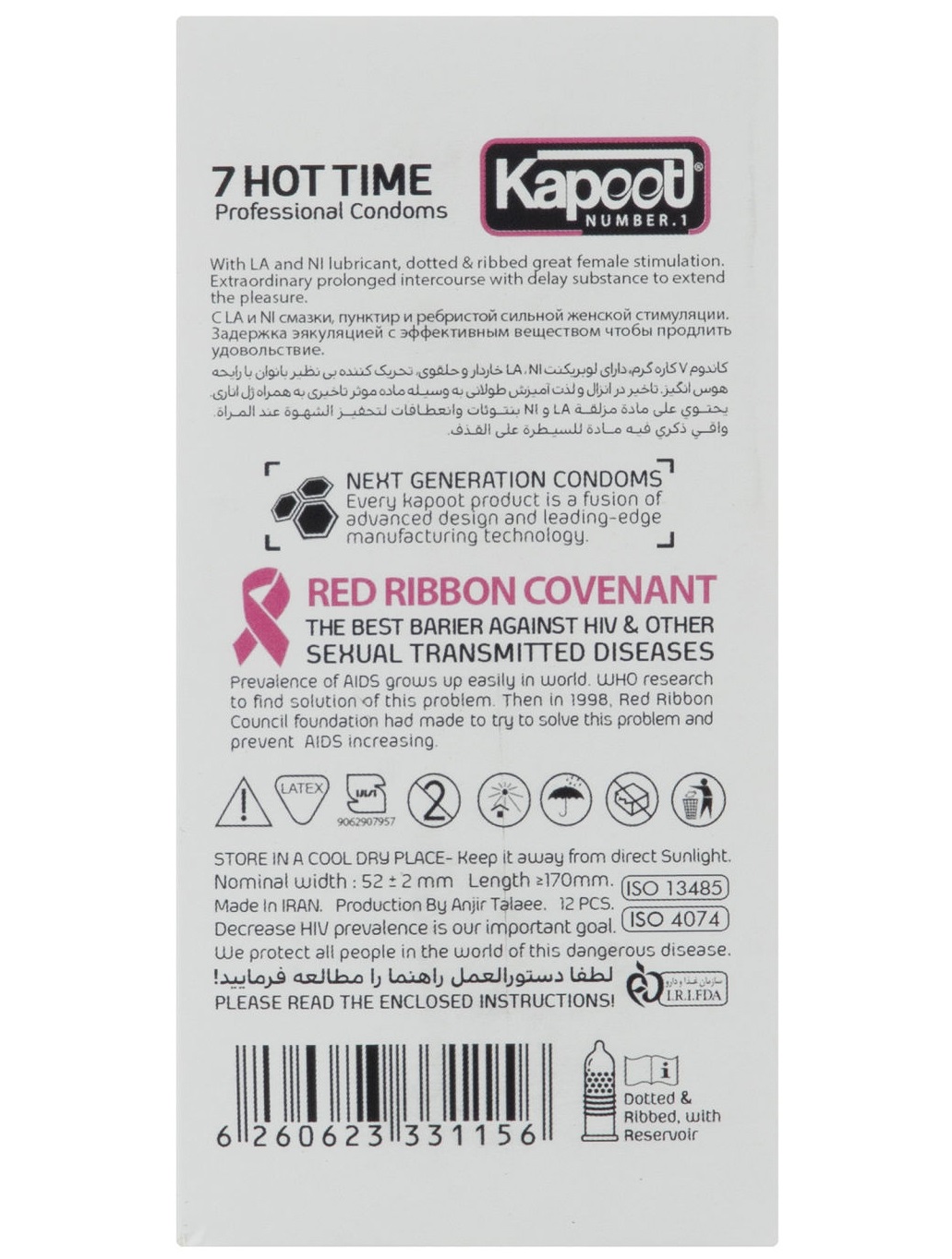 کاندوم 7 کاره گرم کاپوت Kapoot 7 Hot Time بسته 12 عددی