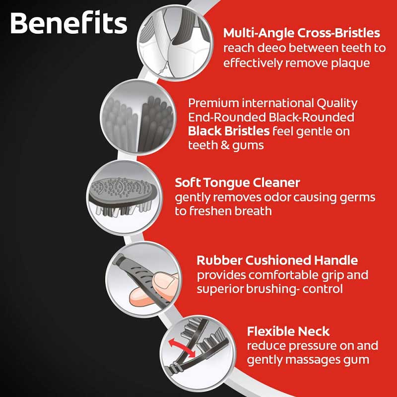 دارای تارهای برس با انتهای گرد جهت ملایمت با لثه و دندان