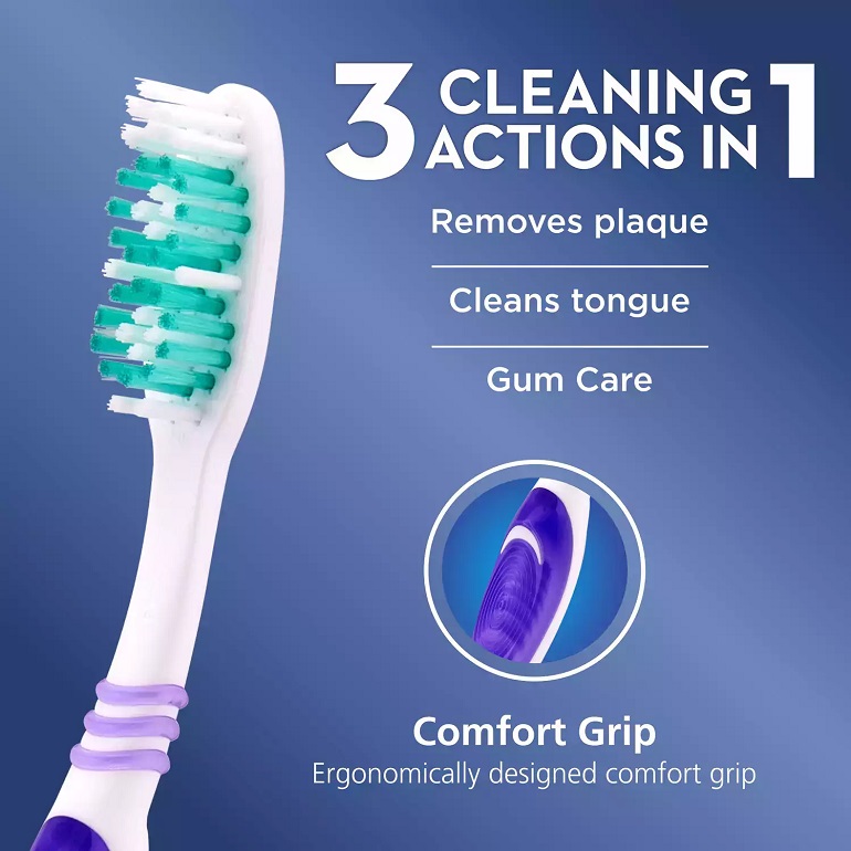 مسواک مدیوم اورال بی Oral B Allrounder 123 دارای سه عملکرد پاک کنندگی دندان، لثه و زبان می باشد. مسواک 123 اورال بی دارای تارهای برس با انتهای گرد جهت ملایمت با لثه و دندان و همچنین موقعیت قرارگیری تارهای برس به صورت فنجانی (دایره ای) جهت پاک کنندگی میان دندان ها می باشد. علاوه بر این ویژگی ها پاک کننده زبان در پشت مسواک محصولی کامل را به وجود آورده است.