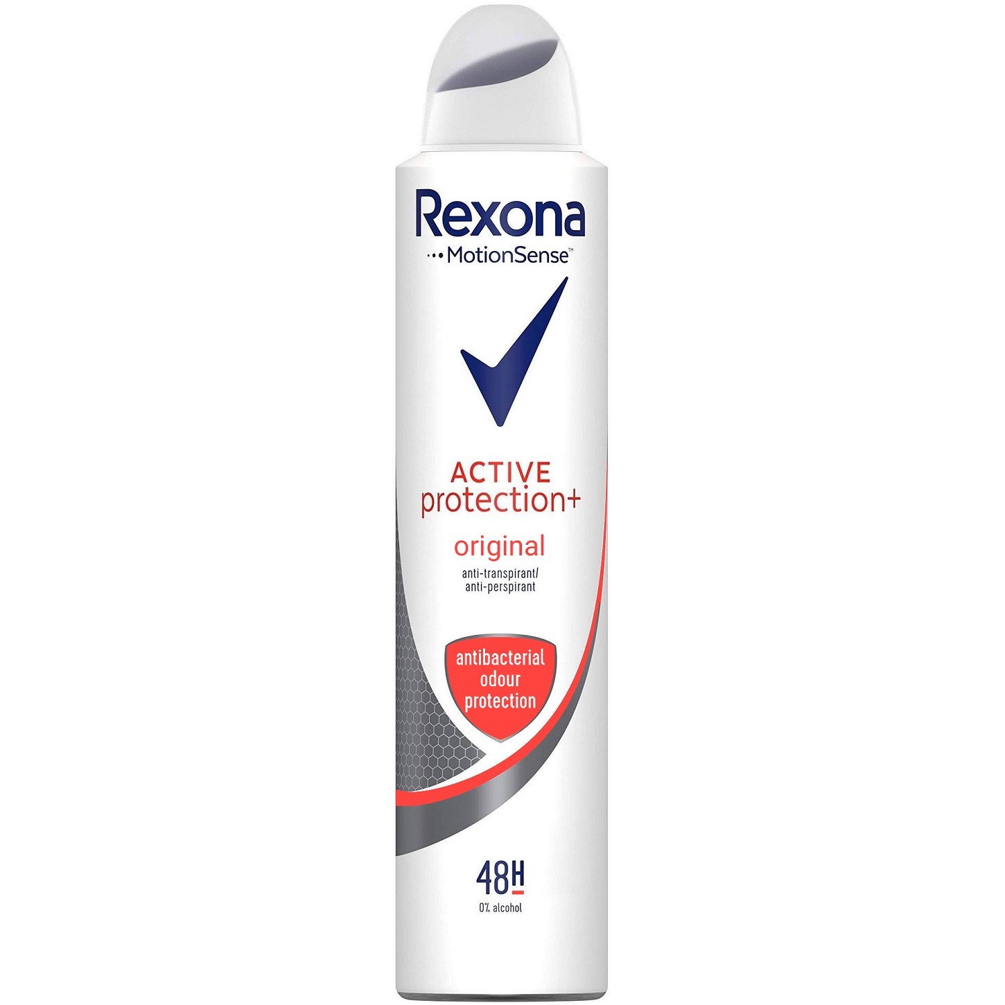 اسپری ضد تعریق رکسونا پروتکشن اکتیو Rexona Protection Active Original محافظت کننده فعال در برابر باکتری های ایجاد کننده بوی نامتبوع عرق بوده و دارای رایحه اورجینال رکسونا می باشد. اسپری ضدتعریق رکسونا دارای تکنولوژی موشن سنس جهت محافظت کامل از خشکی زیربغل در حرکت و شرایط پرتحرک است.