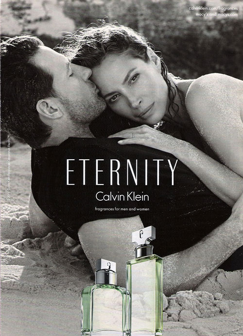 عطر مردانه کلوین کلین اترنیتی Calvin Klein Eternity معرفی شده در سال 1990 توسط خانه مد کلوین کلین دارای رایحه آروماتیک و معطر می باشد. رایحه آغازین اترنیتی شامل نت های لاوندر، پرتقال ماندارین، ترنج و لیمو است که در میانه مسیر بویایی به رایحه مریم گلی، میوه درخت ارس، ریحان، گل شمعدانی، گشنیز، گل یاس، شکوفه پرتقال، گل سوسن و گل زنبق دره می رسد. رایحه های پایانی این ترکیب نیز شامل چوب صندل، وتیور، مشک، چوب رزوود برزیلی و کهربا می باشد.